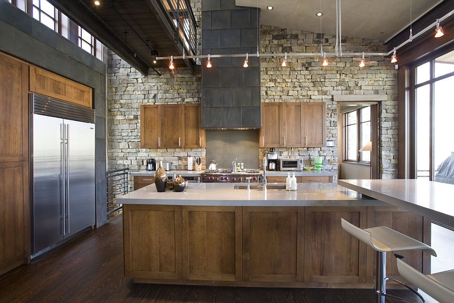 Интерьер кухни с камнем на стене: 70 фото и современных идей