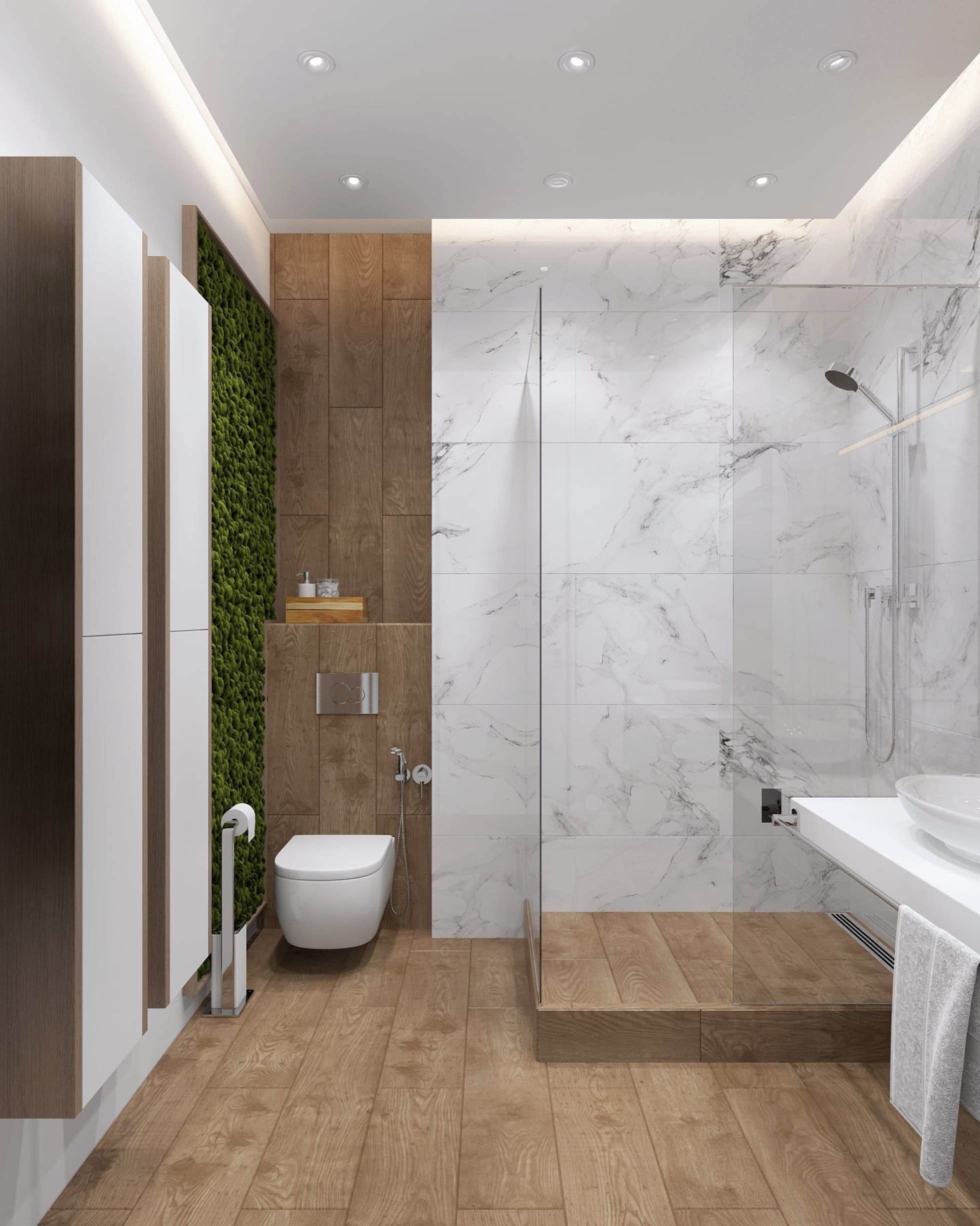 Дизайн ванны мрамор с деревом