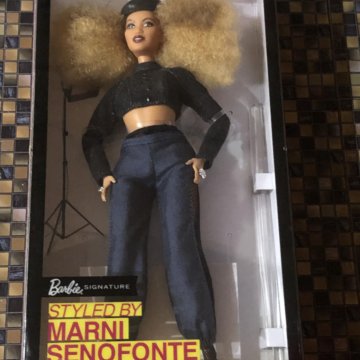 Barbie Styled by Marni Senofonte African-American 2018 В сентябре 2017 года на страничке barbiestyle в Instagram появилась серия фотографий с куклами Барби в одежде от дизайнера Марни Сенофонте — топового стилиста знаменитостей Голливуда и не только . Новую джинсовую коллекцию представили 6 кукол разных рас и цвета кожи .