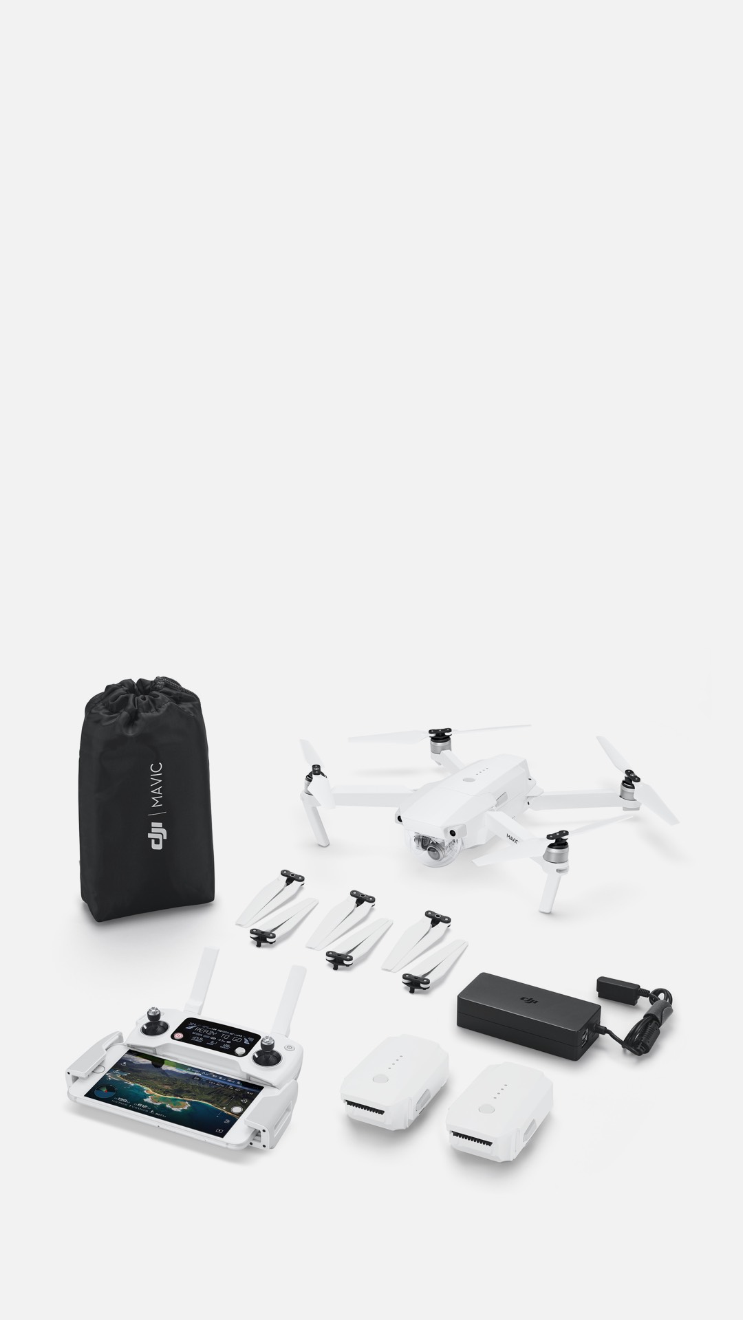 Квадрокоптеры DJI Mavic . Комбо-набор DJI Mavic Air Fly More Combo включает комплект из 3 батарей, 6 пропеллеров, зарядного хаба, адаптера для подключения батареи к банку питания и удобную сумку для перевозки .