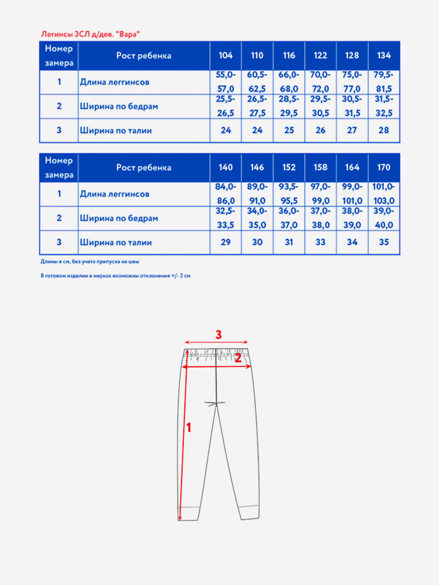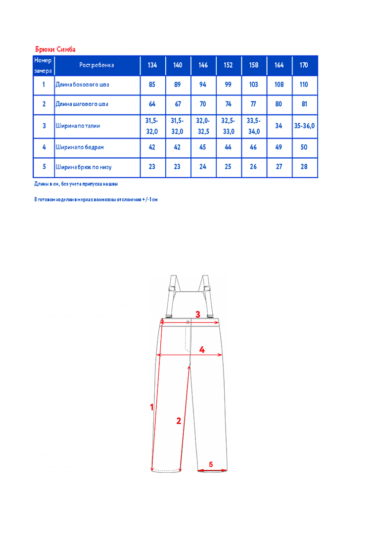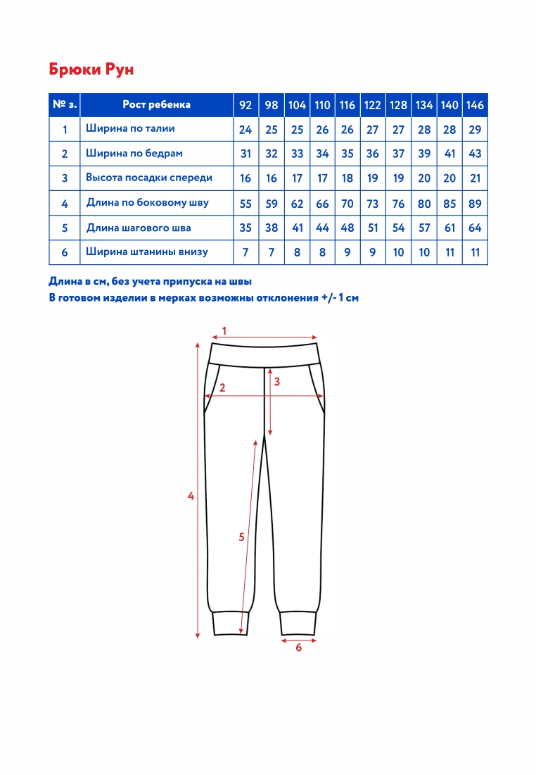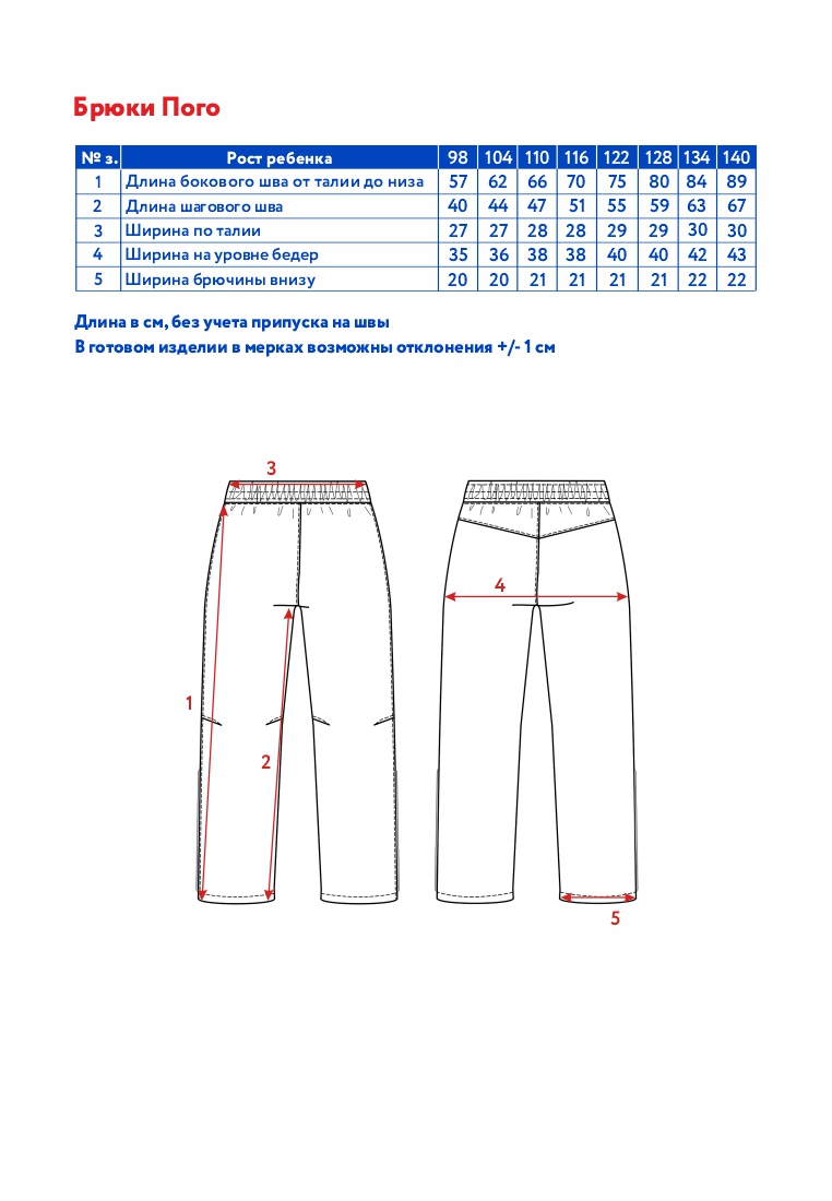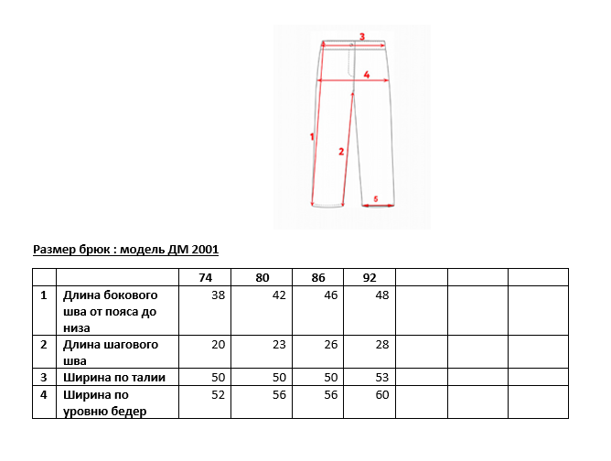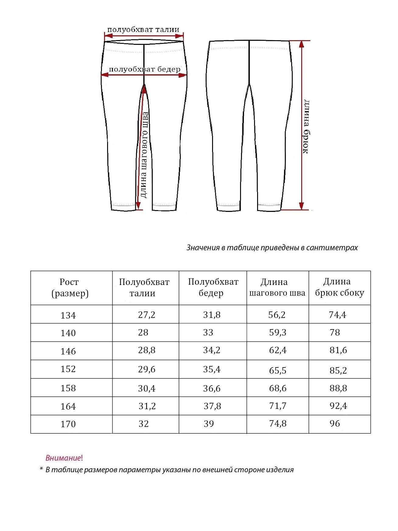 Длина брюки детские