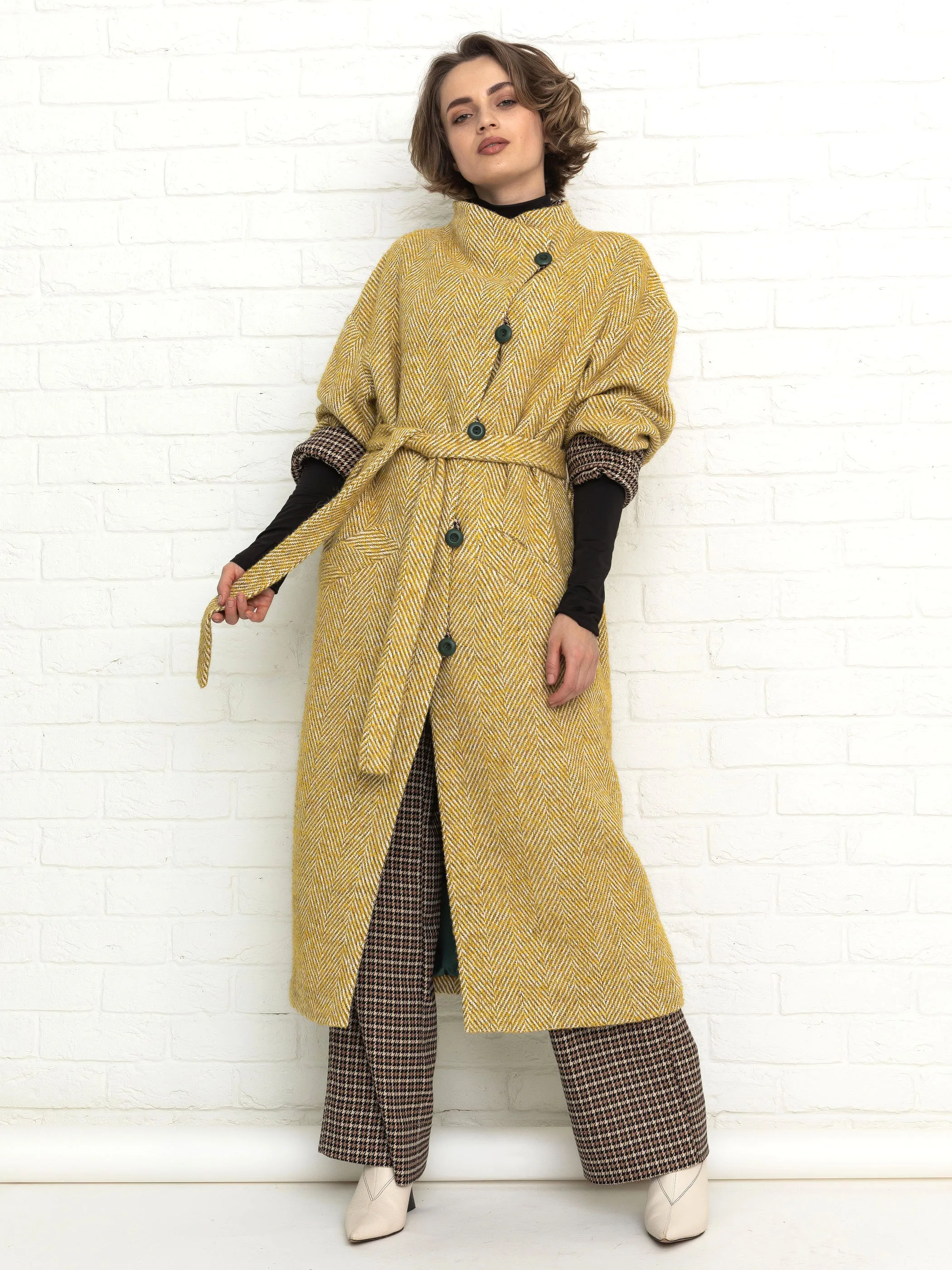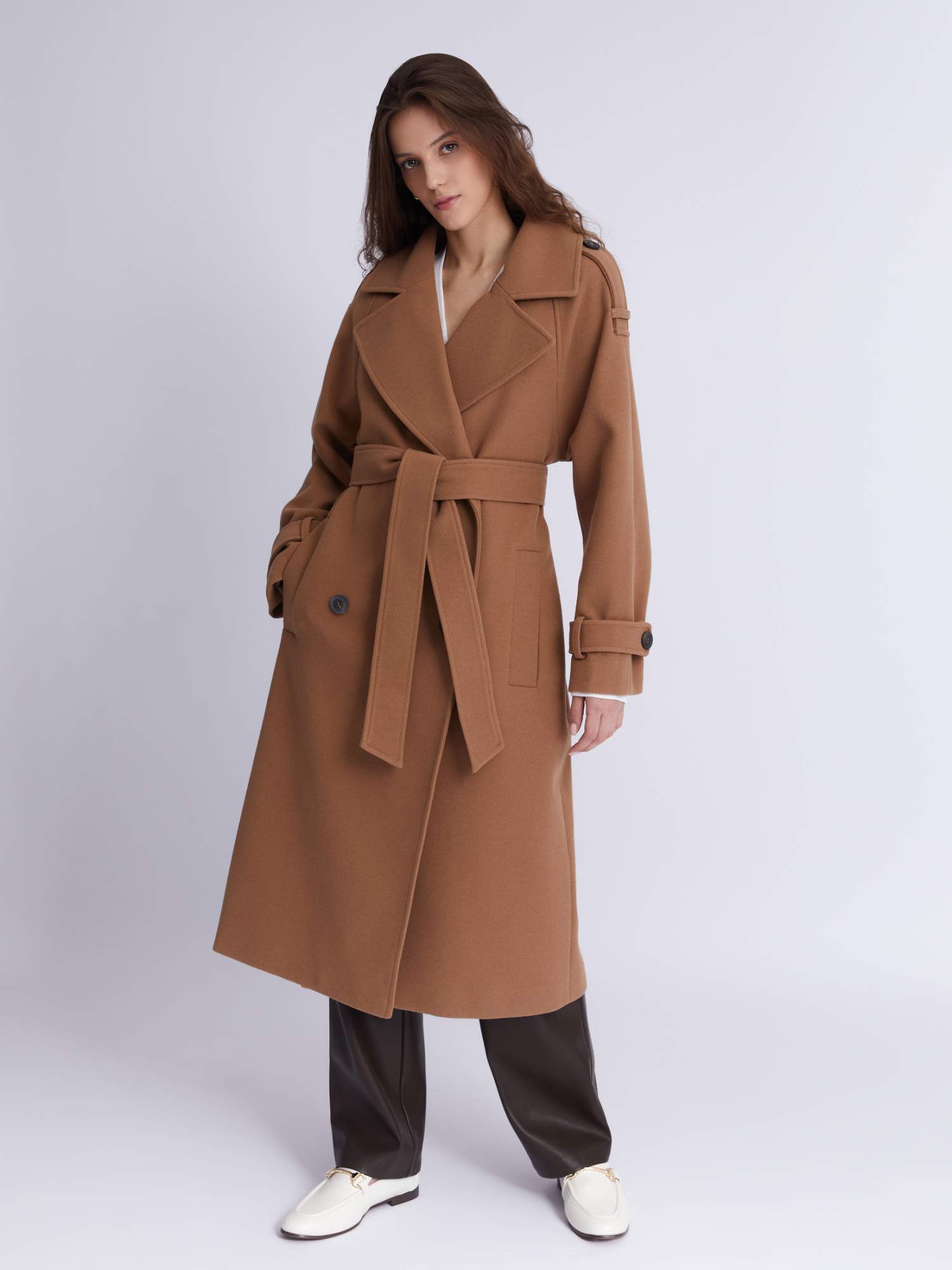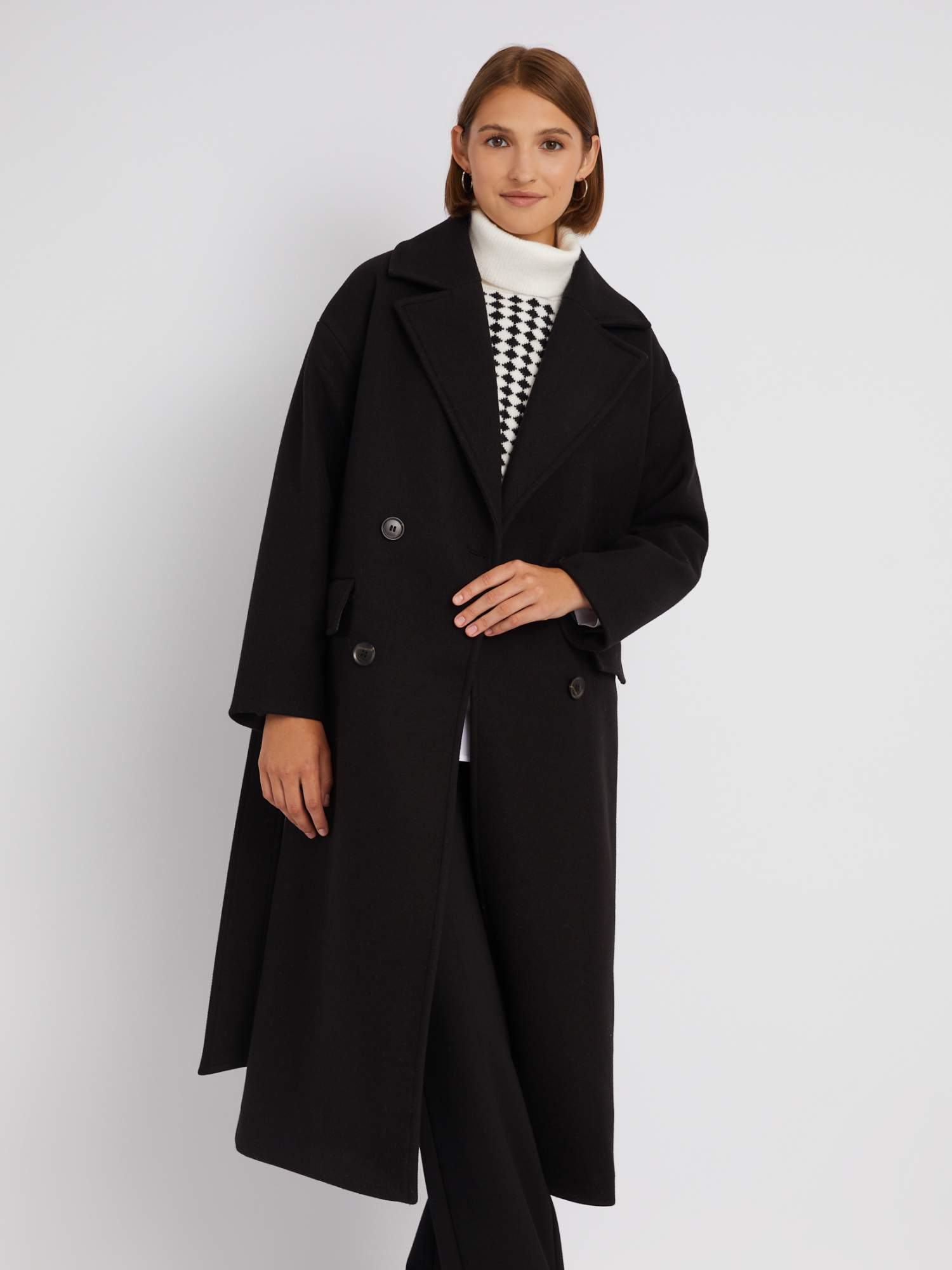 Длинное пальто на пуговицах