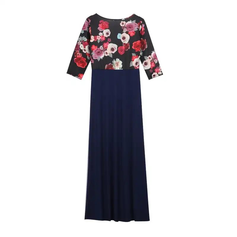 Длинное платье с принтом - тёмно-синий в цветочек