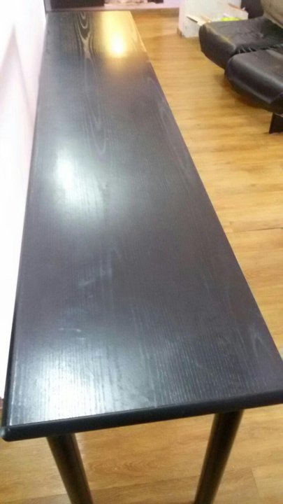 Вдоль одной из стен . Длинные консольные и узкие прямоугольные столы, размещенные вдоль стены, сэкономят пространство, при этом создав просторную рабочую зону . У окна .