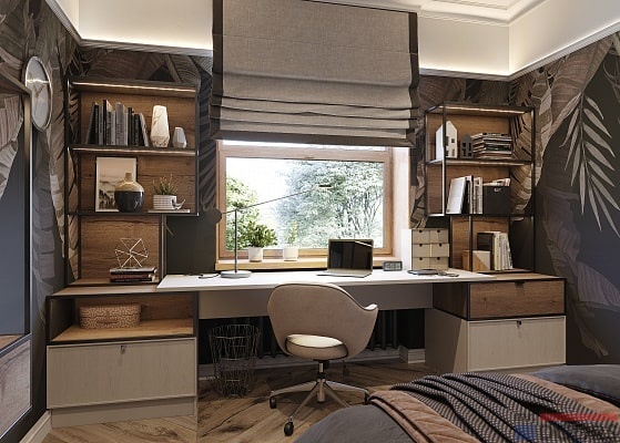 Одним из функциональных предметов интерьера является письменный стол . Длинный письменный стол можно разместить напротив окна или вдоль стены, он прекрасно подойдет для зонирования комнаты .