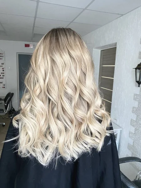 Длинные здоровые светлые волосы, стилизованные под объем - вид со спины на белом фоне — Фото автора lubavnel