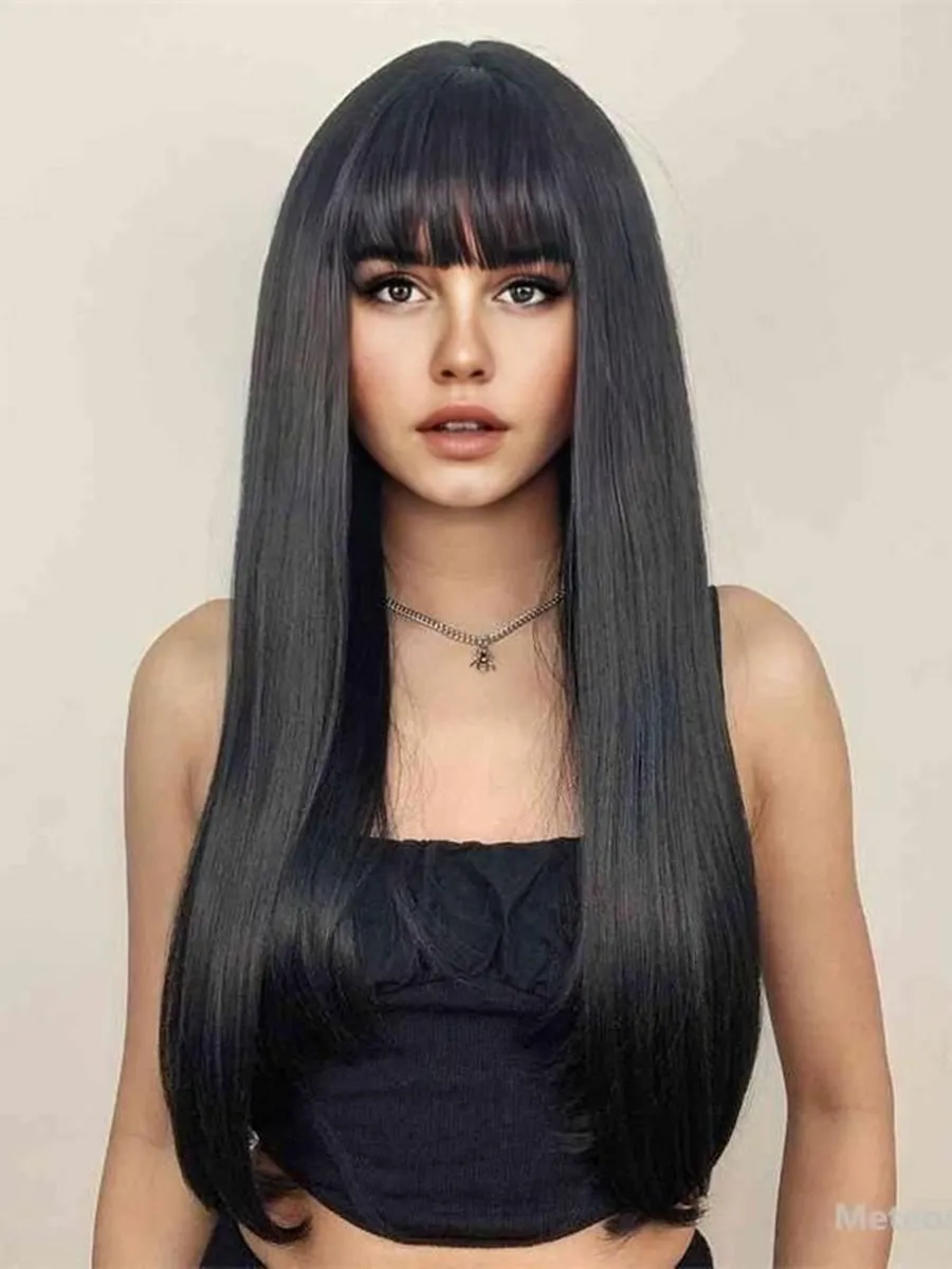 Длинные Темные Волосы С Челкой Фото