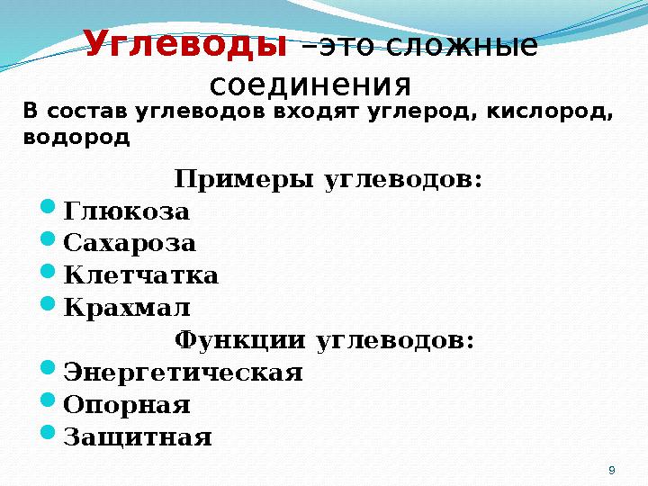 Для описания углеводов можно использовать признаки