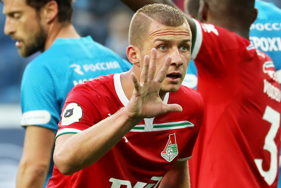 Фото Зураб Джавахадзе, «Известия» . Полузащитник «Локомотива» Дмитрий Баринов обматерился во флеш . . .