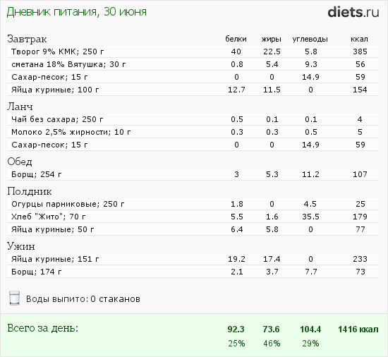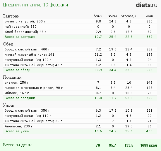 Дневник питания рецепты