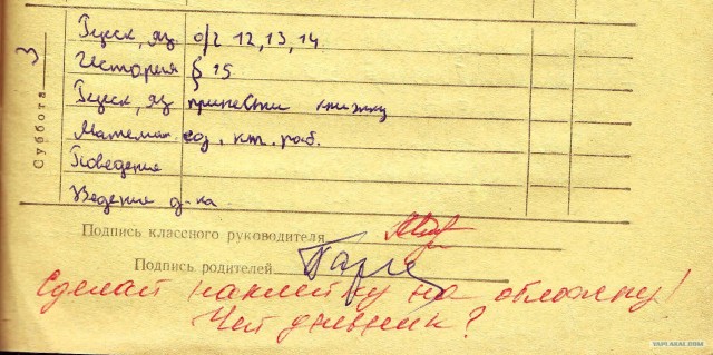 Дневник подпись родителей