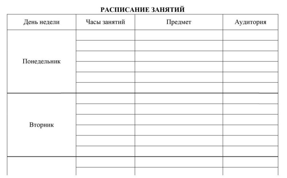 Дневник расписание уроков шаблон