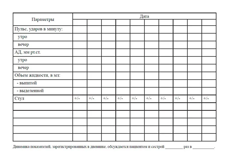 Дневник самоконтроля пульс