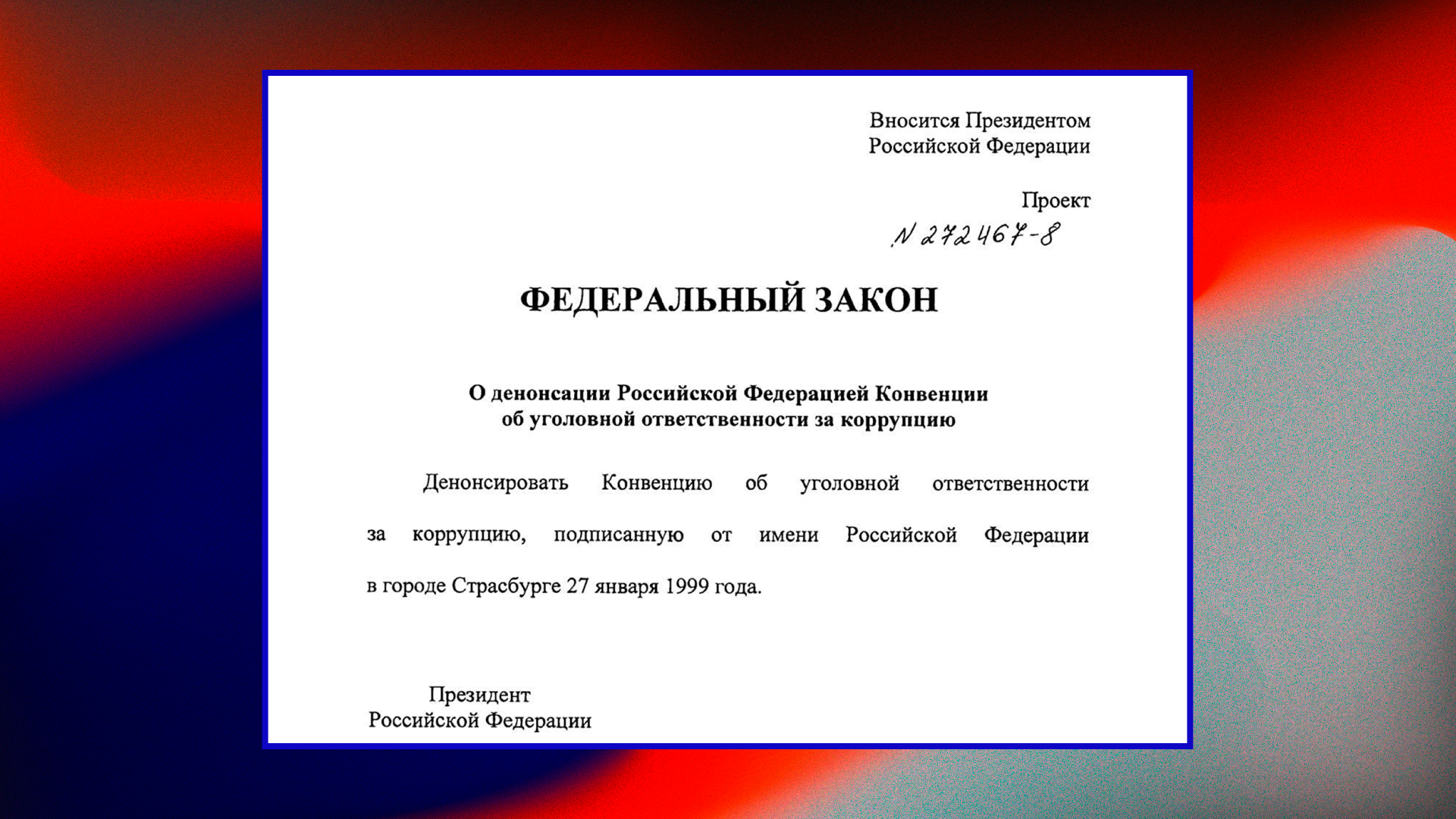 И еще одна новость, которая расставляет все точки над «i». Вот Путин же говорил всем прямо, что он воровал, ворует и будет воровать? Вы, конечно, скажете, что нет. Но он говорит вам это каждый день. Вот, например, сегодня он решил разорвать Конвенцию ООН по борьбе с коррупцией. По этой конвенции все государства должны были вводить уголовку за коррупцию. Путин решил эту Конвенцию в России отменить.