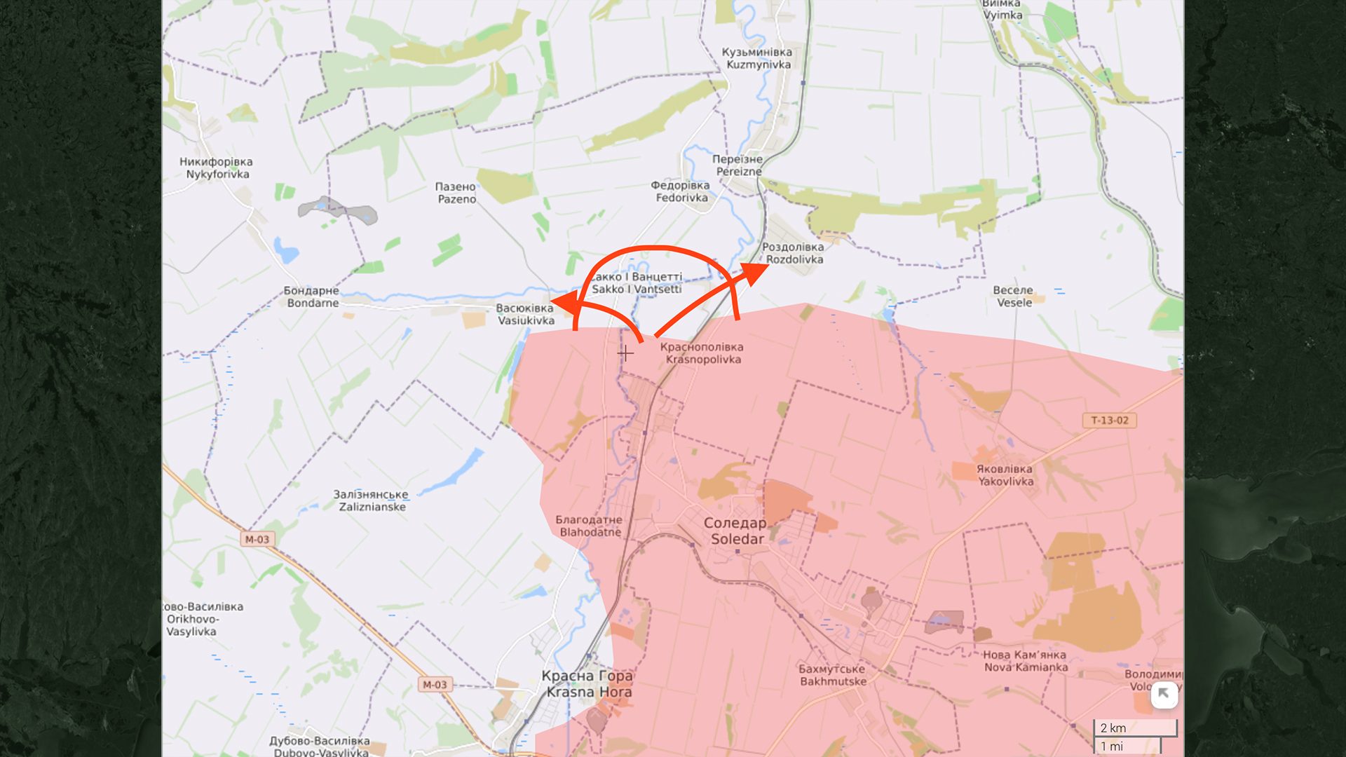«Вагнеровцы» продолжают атаки к северу от Соледара — по направлению к Северску. Вчера источники Пригожина заявляли о взятии села Николаевка и атаках на Раздоловку. Но украинская сторона это не подтверждает.