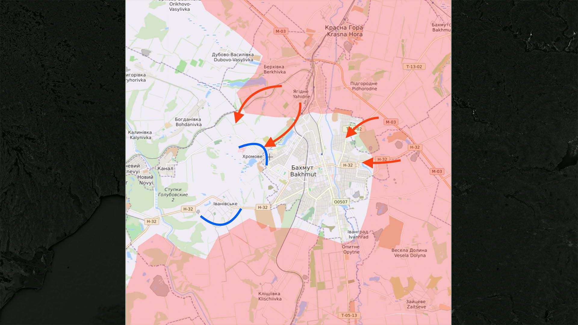 Ситуация в Бахмуте осложняется. Сейчас части ЧВК «Вагнер» прорываются все дальше с севера на юг, стремясь перерезать оставшиеся дороги в город. Ключевым тут остается Хромово.
