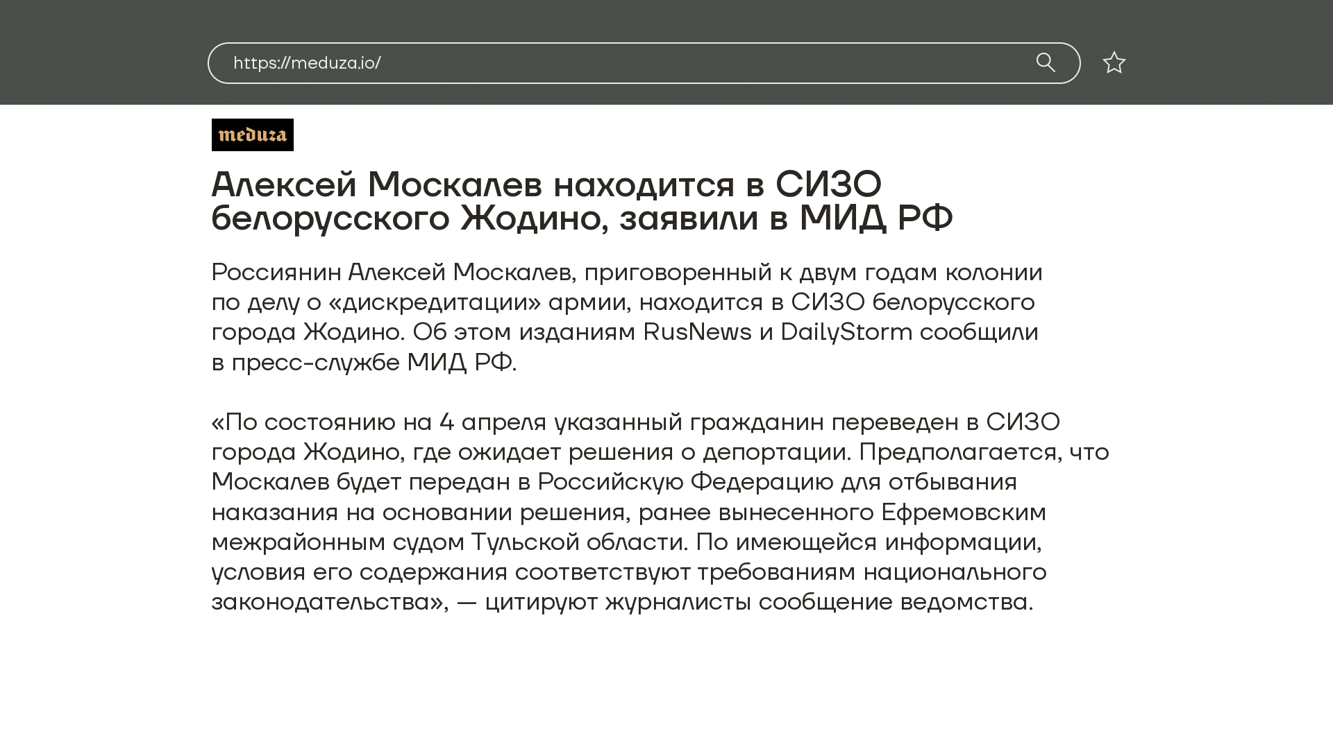 Тем временем российский МИД сообщил, что сам Алексей Москалев находится в СИЗО Жодино в Беларуси и ожидает депортации.