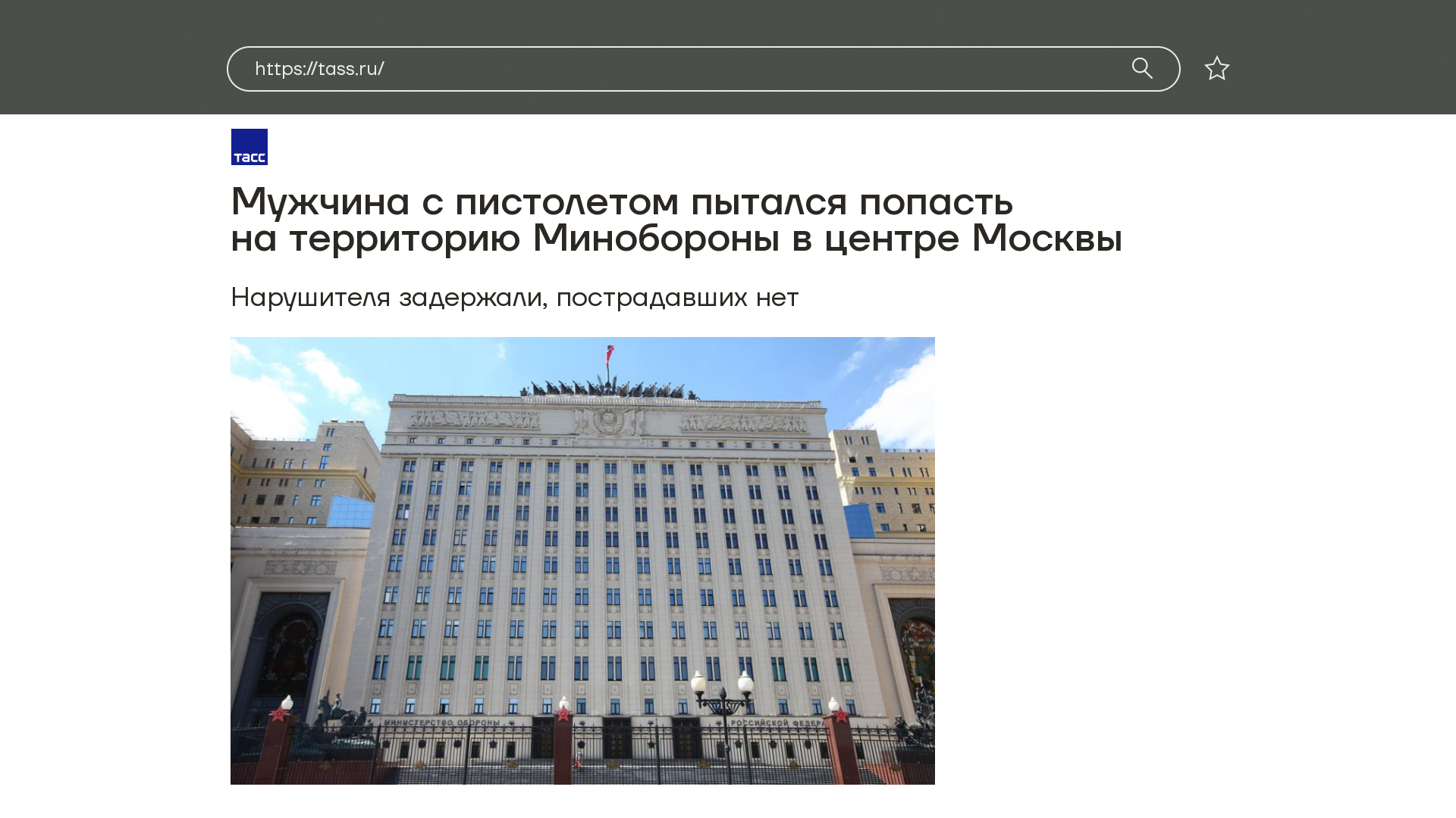 А в здание Минобороны в центре Москвы пытался проникнуть мужчина с пистолетом. Правда, пневматическим. Его задержали, пишут, что мужчина был в неадекватном состоянии. Но в целом направление мысли верное — враги России сидят в том числе в здании Минобороны.
