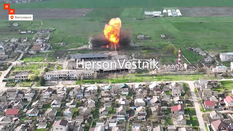 Российская авиация продолжает использовать управляемые авиабомбы для поражения целей. В Херсонской области, в населенном пункте Белозерка, был уничтожен склад с боеприпасами.