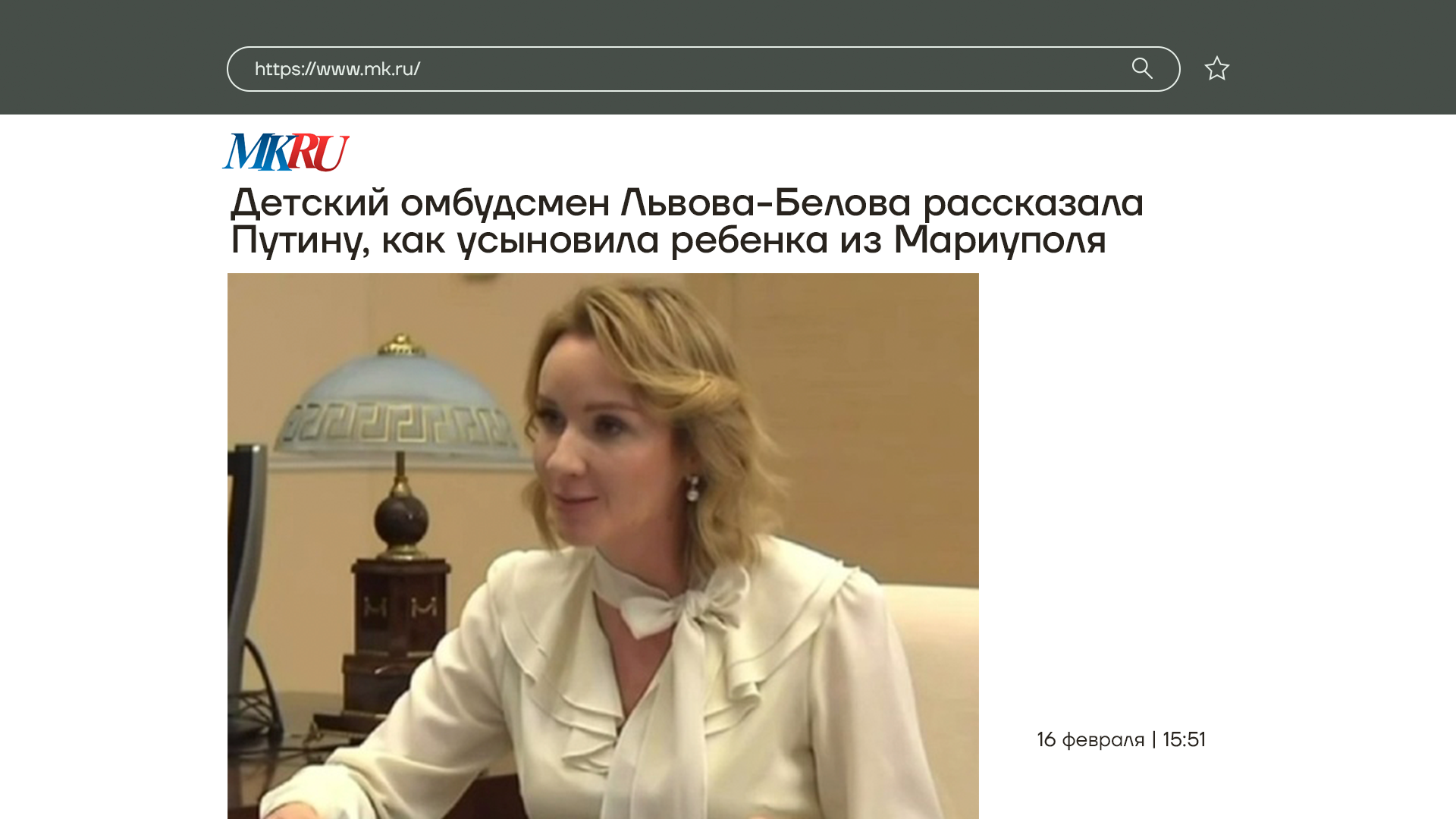 Журналист: Есть резонные основания полагать, что вы ответственны за незаконный вывоз детей с территории Украины. Вы военная преступница?