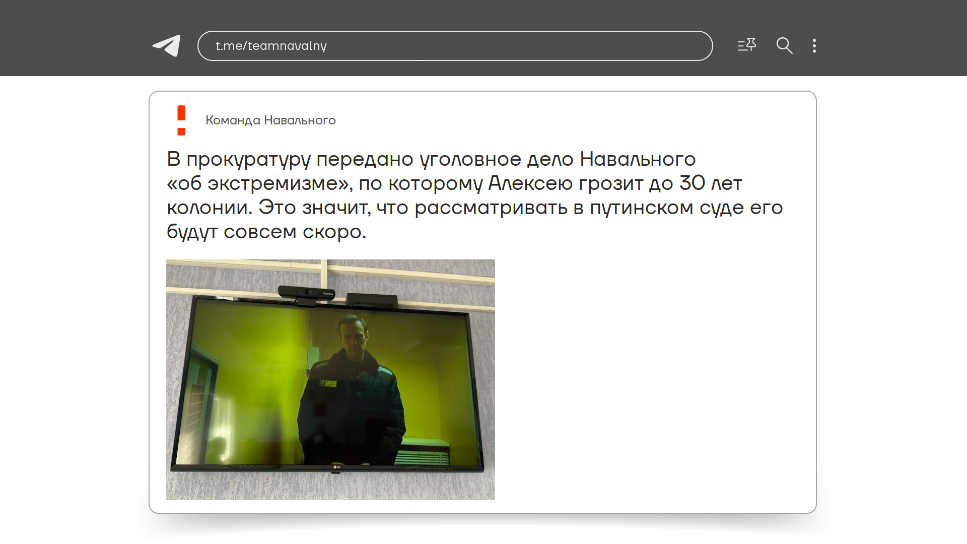 И новость про Алексея Навального. В прокуратуру поступило его дело об экстремизме, по которому ему грозит до 30 лет тюрьмы. Рассмотрение начнется уже в ближайшее время. Понятно, что все это потому, что Алексей открыто выступает против путинской власти и не сдается, даже находясь в тюрьме, постоянно оказываясь в ШИЗО. Он не сломлен. И таким, надеюсь, и останется.