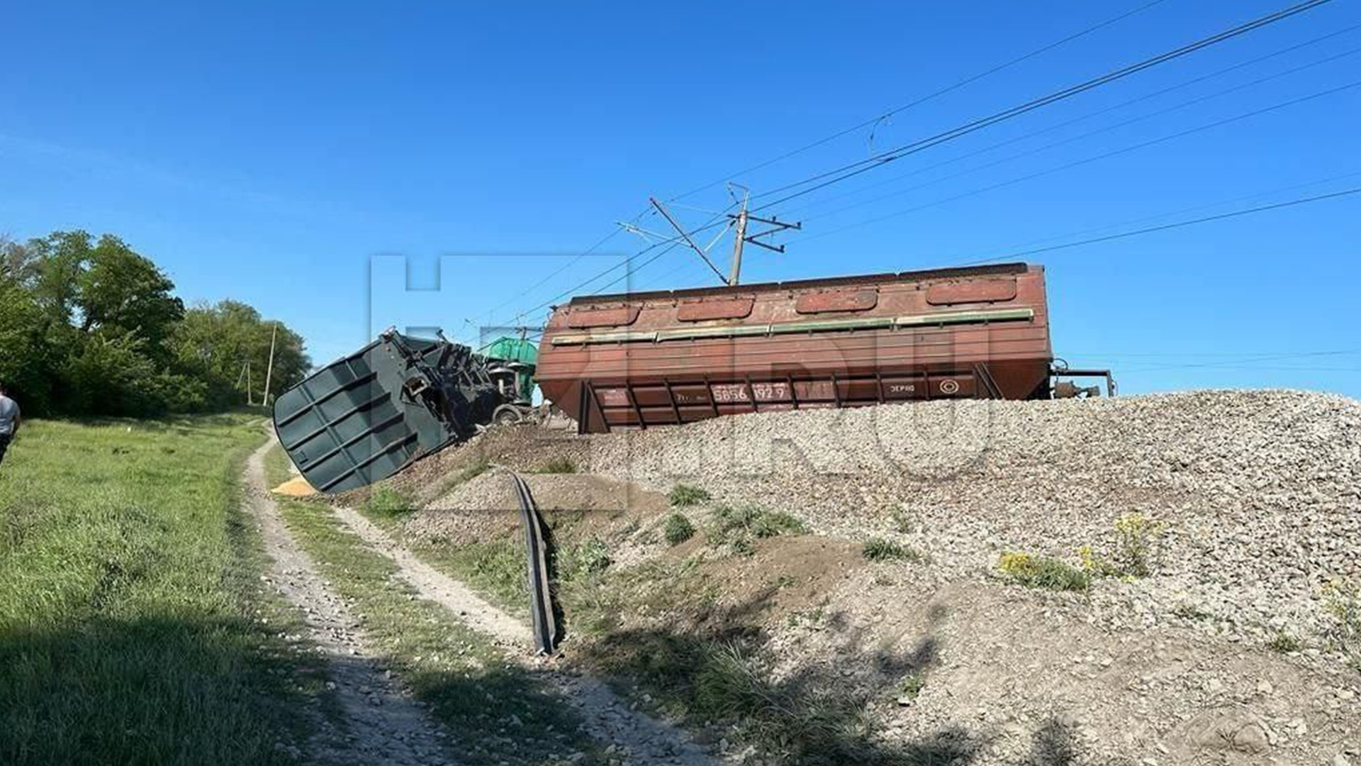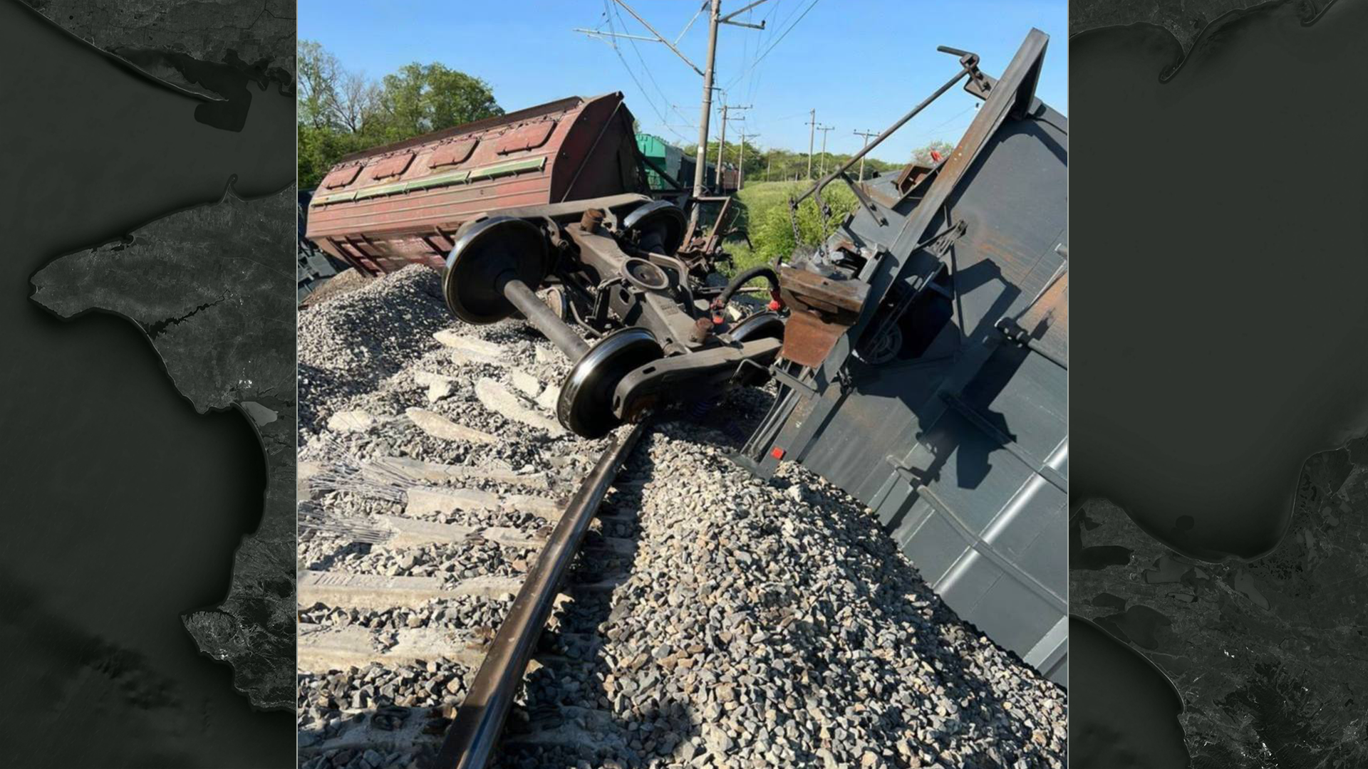 Снова подрыв на железной дороге. На этот раз в Крыму — в 9 км от Симферополя на пути в Севастополь. После подрыва рельсов с путей сошел поезд, повреждены 8 вагонов с зерном, 5 из которых упали.