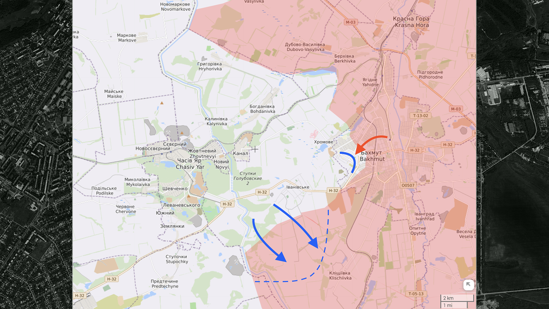 Сам город выглядит сейчас вот так. В ходе городских боев дома просто сносятся. На спутниковых снимках можно наглядно посмотреть, как война изменила Бахмут. По сути, город просто перестал существовать, восстанавливать его будет крайне тяжело. Сейчас почти весь Бахмут под контролем вагнеровцев, все идет к тому, что они захватят его целиком.