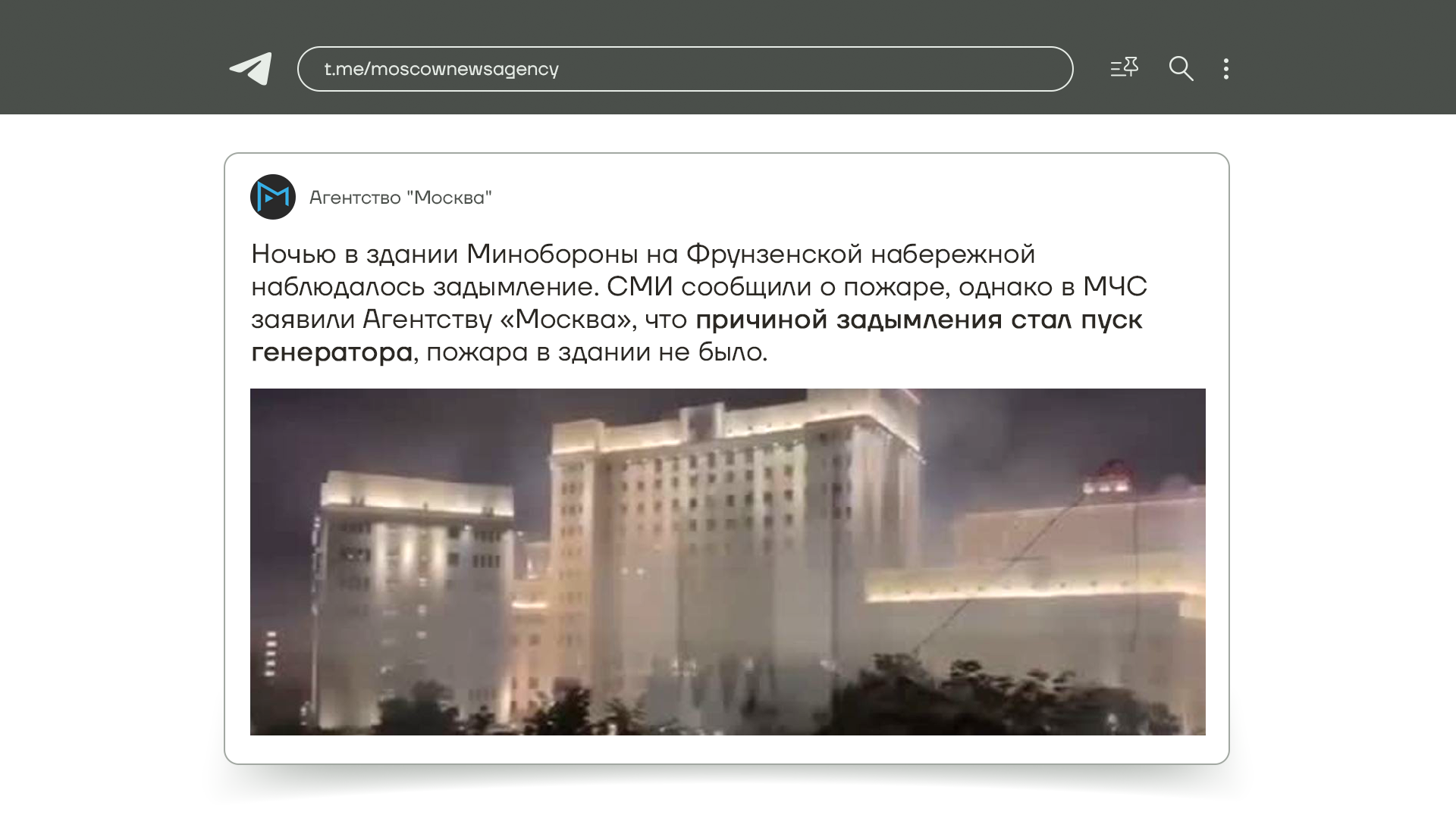 Сегодня ночью в здании Минобороны произошел пожар, которого не было. Да, вы все верно услышали. Ночью москвичи заметили дым на Фрунзенской набережной и даже сообщили о запахе гари.