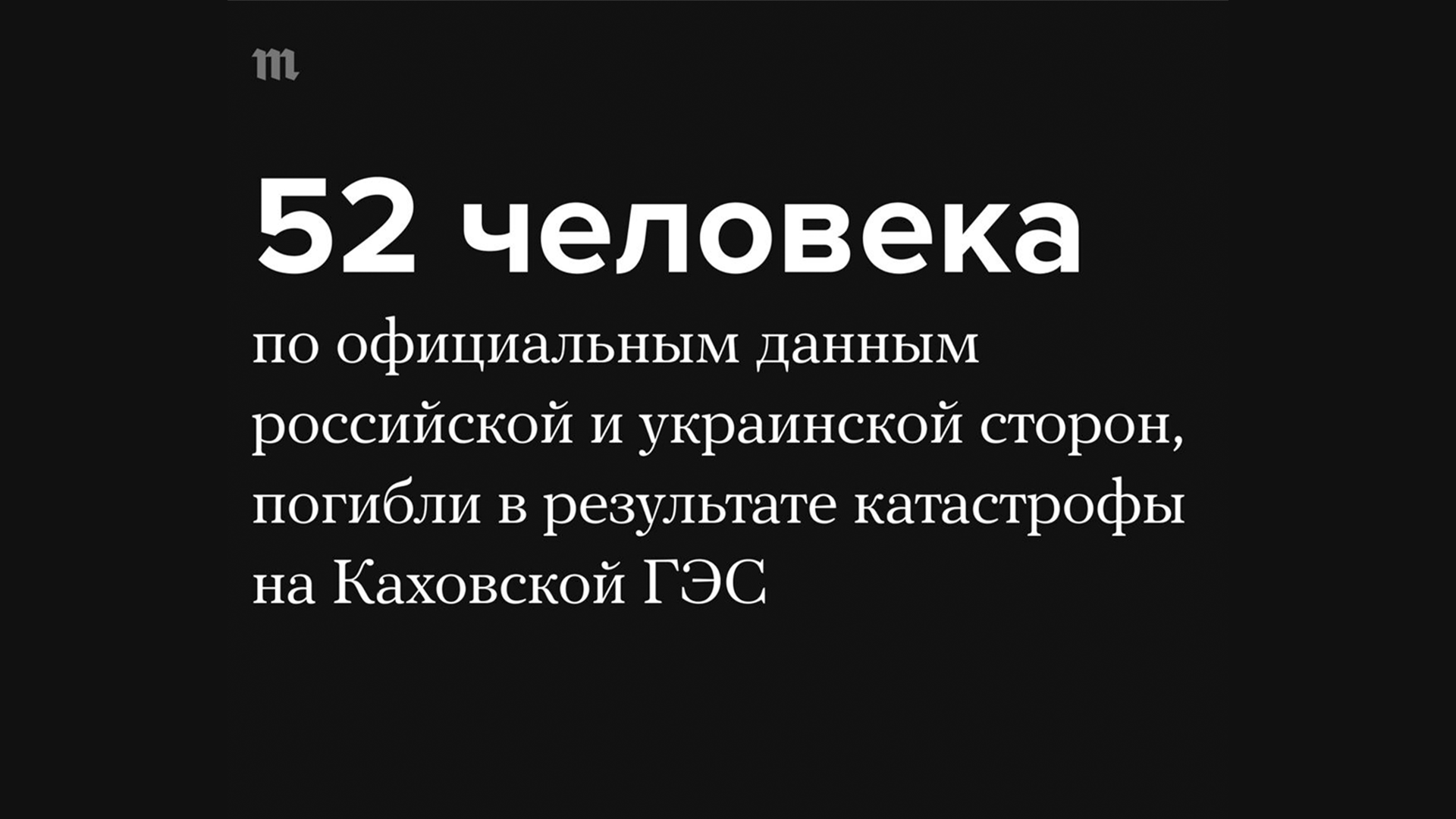 Тем временем в результате катастрофы на ГЭС только по официальным данным погибло 52 человека, из них 35 — на оккупированной территории.