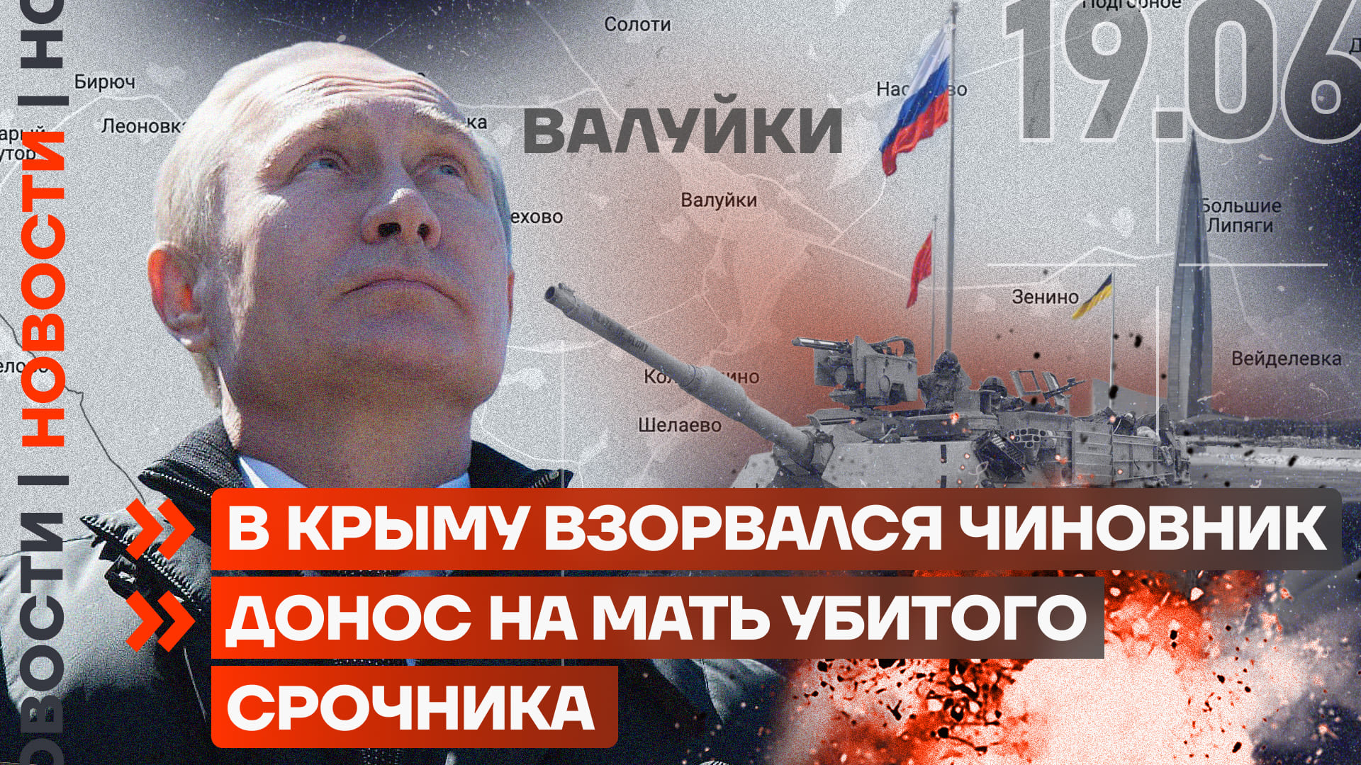 Уничтожен российский склад боеприпасов, Белгородская область снова под мощным обстрелом, а в Крыму взорвался очередной путинский ставленник. Россия не пускает гуманитарную миссию ООН на затопленные территории, в школы вернется трудовое воспитание, а мать погибшего срочника обвинили в дискредитации армии. Но начнем с военных действий.