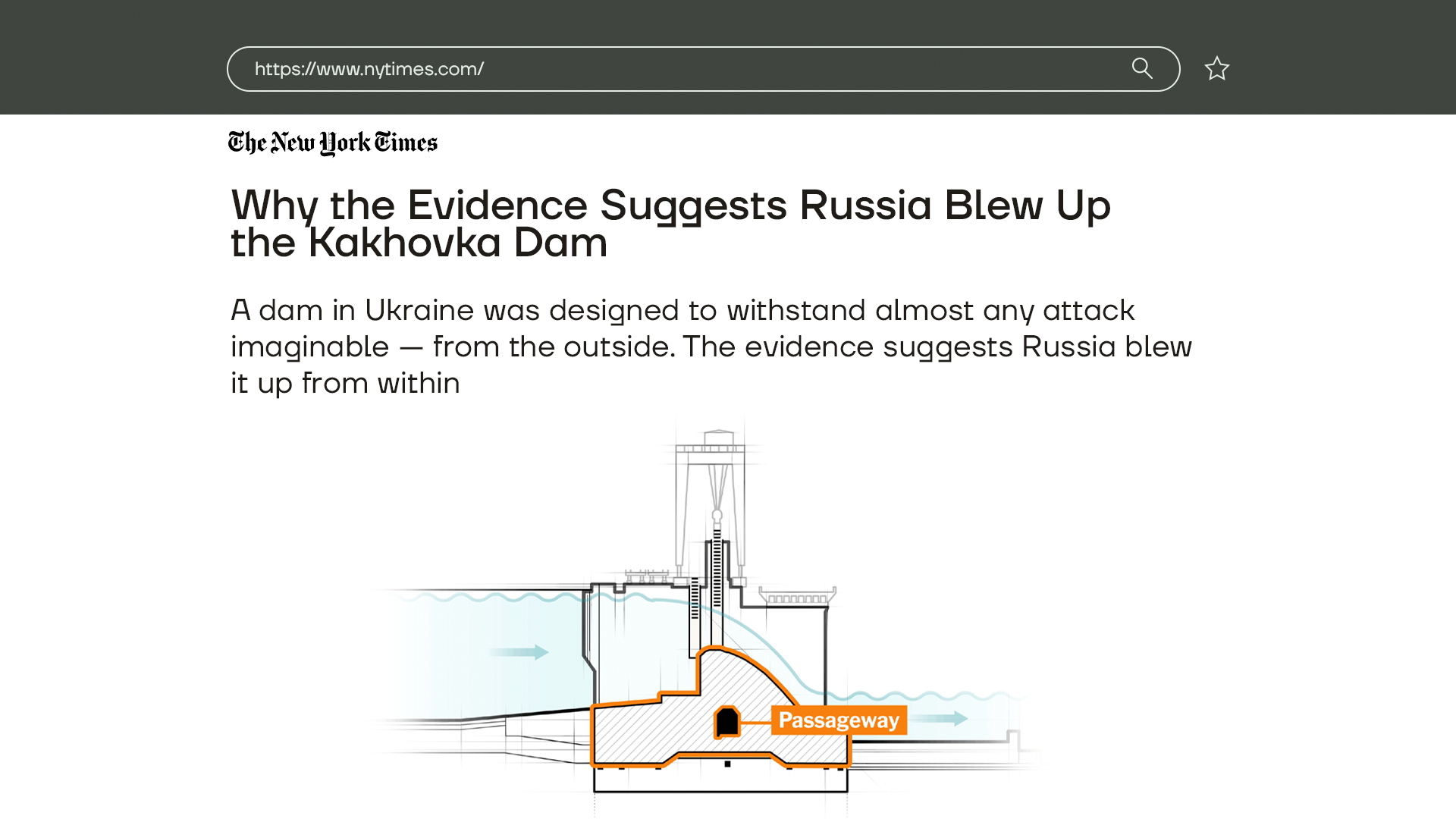 Газета New York Times опубликовала расследование, согласно которому плотина Каховской ГЭС, вероятно, разрушилась из-за взрыва в техническом тоннеле. Попасть в этот тоннель можно было только из машинного зала, который находится под контролем российской армии. Соответственно, это еще один аргумент в пользу того, что за разрушением плотины стоят путинские войска.