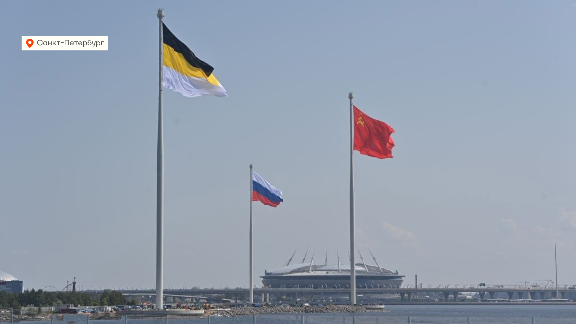 А в Петербурге на берегу Финского залива вчера подняли флаги России, Российской Империи и СССР. Нет, не потому что не определились, а потому что у каждого из флагов была «круглая дата». 330 лет триколору Петра Первого, 100 лет Красному Знамени и 165 флагу Российской Империи. За процессом поднятия флагов наблюдал и Путин с яхты. Для него это очень важное мероприятие. Во время исполнения гимна он даже заткнул женщину, которая что-то ему оживленно рассказывала.