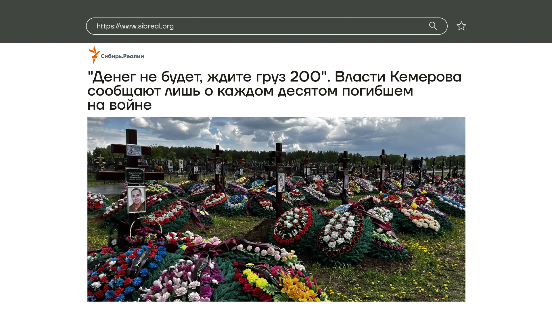 А вот гибель людей на войне совершенно реальна, но ее стараются всеми силами замалчивать. Например, в Кемерове власти сообщают только о каждом десятом погибшем. В городских СМИ за все время вышло всего 10 некрологов. При этом только на одном местном кладбище появилось уже 105 могил участников войны.