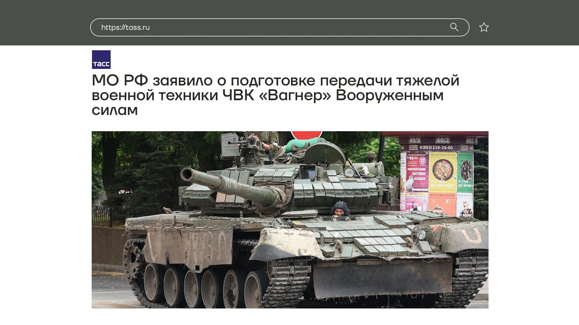 В Псковской области замечены машины, предварительно перевозящие ЧВК «Вагнер» в Беларусь. Напомню, что область граничит с Беларусью на юге. А тяжелая военная техника, которая принадлежала ЧВК «Вагнер», будет передана в Минобороны России.