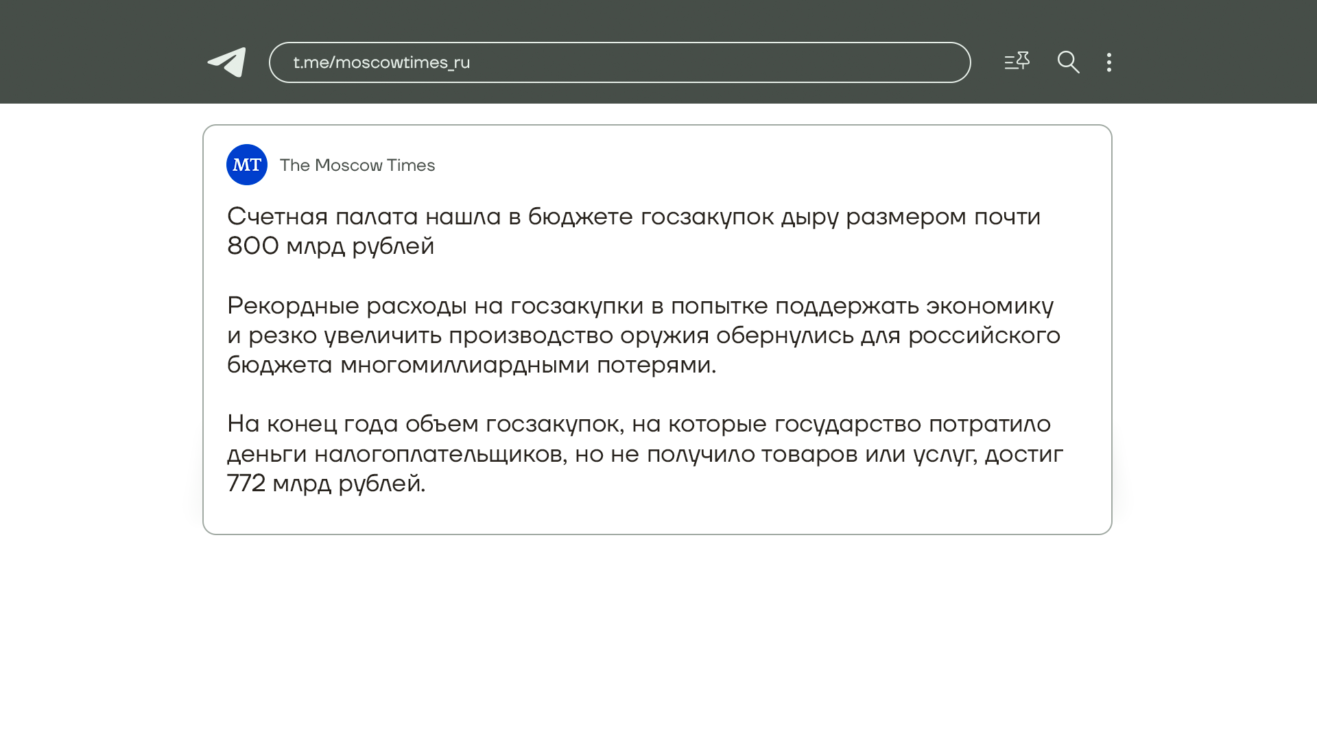 А Счетная палата внезапно нашла дыру в бюджете госзакупок почти на ₽800 млрд. Такими потерями обернулись для российского бюджета поддержка госзакупок и увеличение производства оружия. На конец 2022 года государство потратило из денег налогоплательщиков ₽772 млрд, но не получило никаких товаров и услуг. Это практически годовой бюджет Московской области и вдвое больше бюджета Новосибирской и Нижегородской областей вместе взятых.
