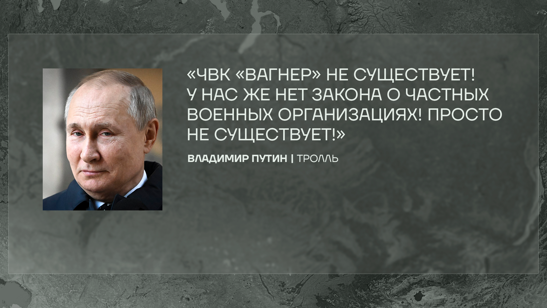Путин вчера в разговоре с корреспондентом «Коммерсанта» сделал сенсационное заявление. Оказывается, ЧВК «Вагнер» не существует. Ее просто нет, потому что нет в России закона о частных военных организациях.