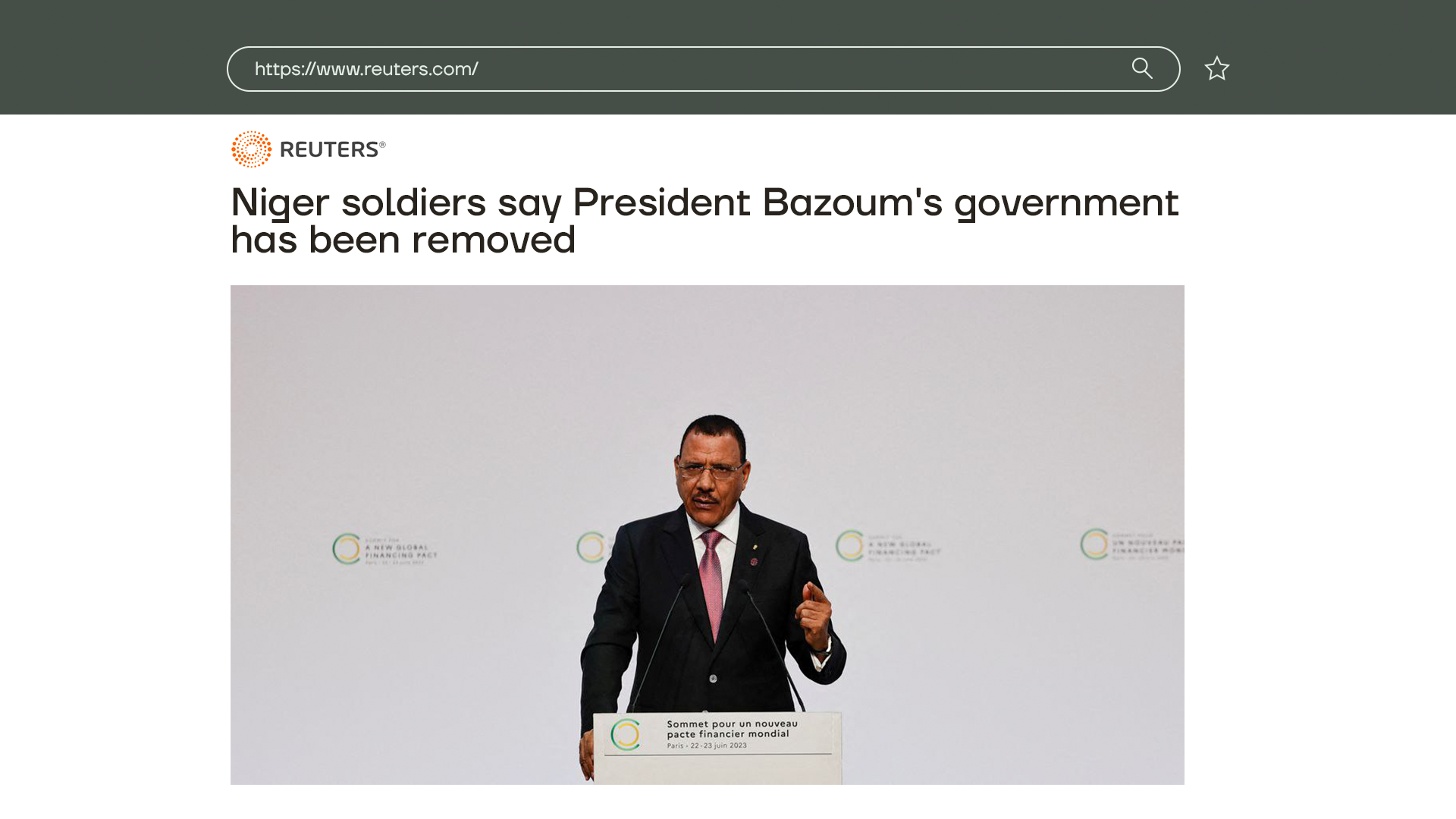 В Нигере произошел военный переворот, об этом на главном телеканале сообщил генерал полковник Амаду Абдраман в компании девяти военных. Он объявил о закрытии границ и введении комендантского часа, работа всех предприятий приостановлена. Самого президента заблокировали в его дворце его же собственная армия охраны — президентская гвардия. Это четвертый переворот в стране после обретения независимости от Франции в 60 годах.