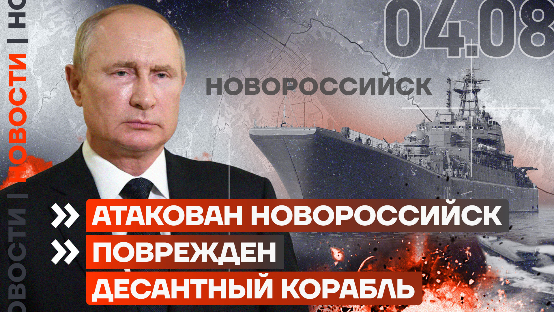 Серьезно поврежден еще один российский военный корабль. Сегодня ночью украинские морские беспилотники атаковали базу Черноморского флота в Новороссийске.