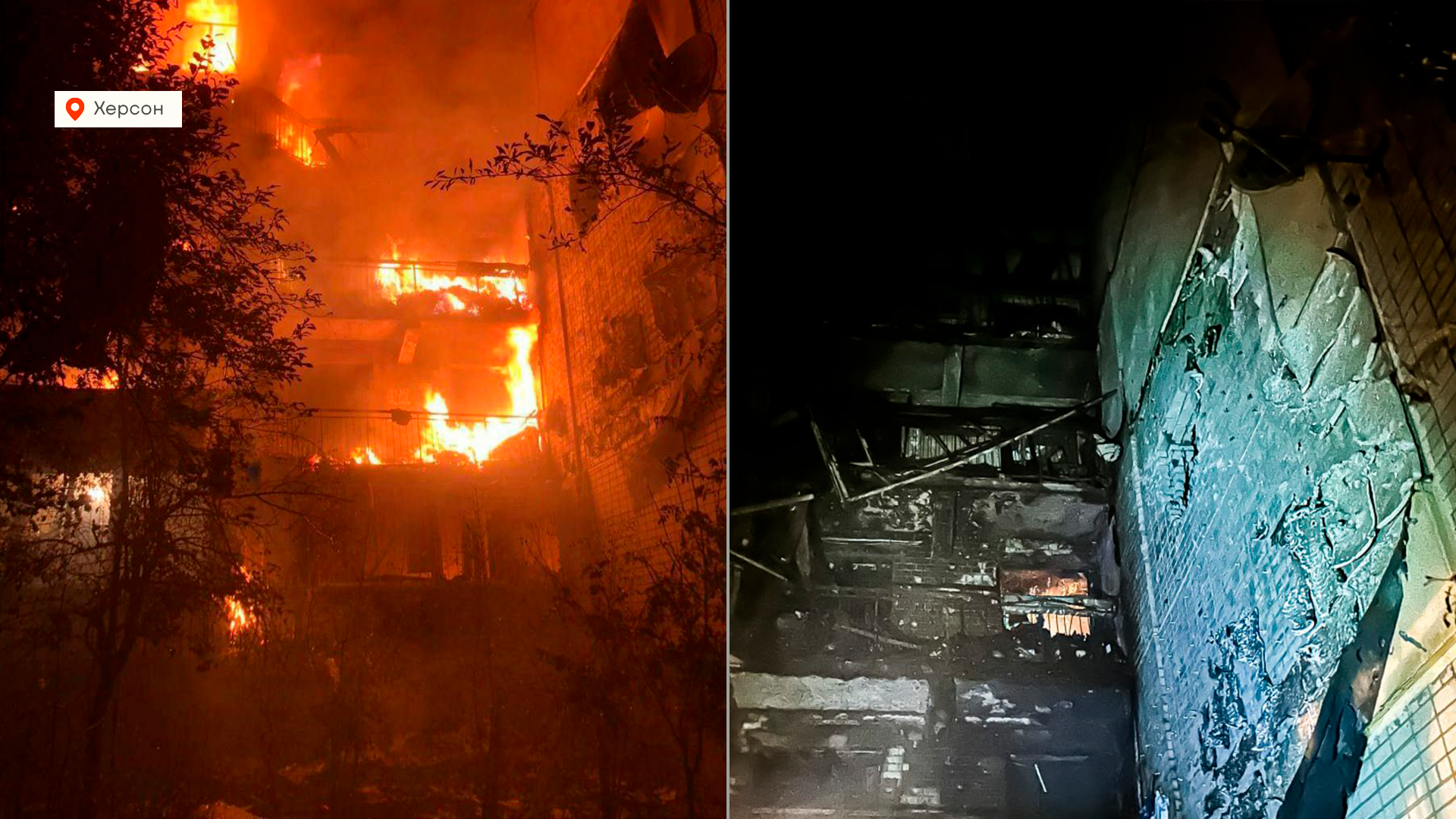 А уже сегодня российские войска обстреляли Херсон. Загорелся фасад девятиэтажного дома, погибла одна женщина еще 12 человек получили ранения.