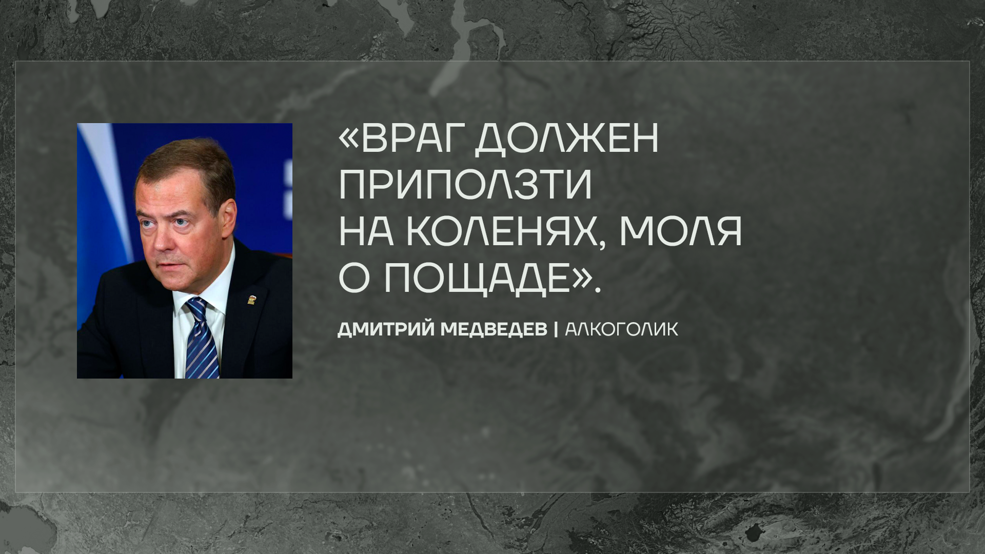 А вот кого в конструктиве сложно заподозрить, так это Дмитрия Медведева. Комментируя саммит в Джидде, он сказал, что переговоры пока не нужны, потому что «враг должен приползти на коленях, моля о пощаде».