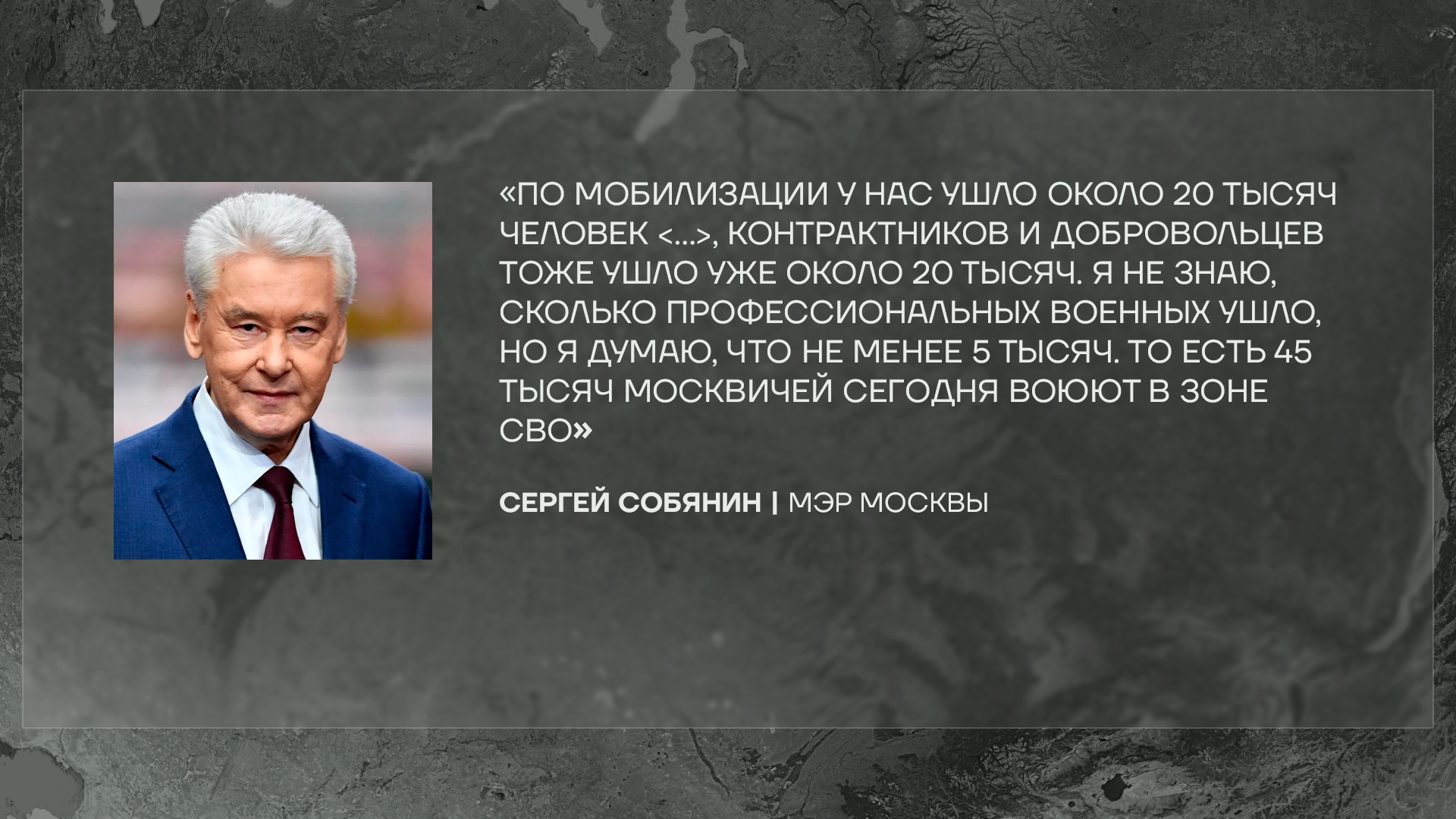 Вчера вечером Сергей Собянин отчитался, что из Москвы на войну в Украину уехало 45 тыс человек. Интересно, что еще 26 июля (меньше месяца назад) Собянин приводил другую статистику. Он говорил, что на фронте сейчас находятся 30 тыс москвичей. Откуда за 3 недели на войне взялось еще 15 тыс жителей столицы — непонятно. Ну, может, запутался человек, с кем не бывает. 15 тысяч туда, 15 тысяч сюда — это же для власти не живые люди, а цифры в статистике.
