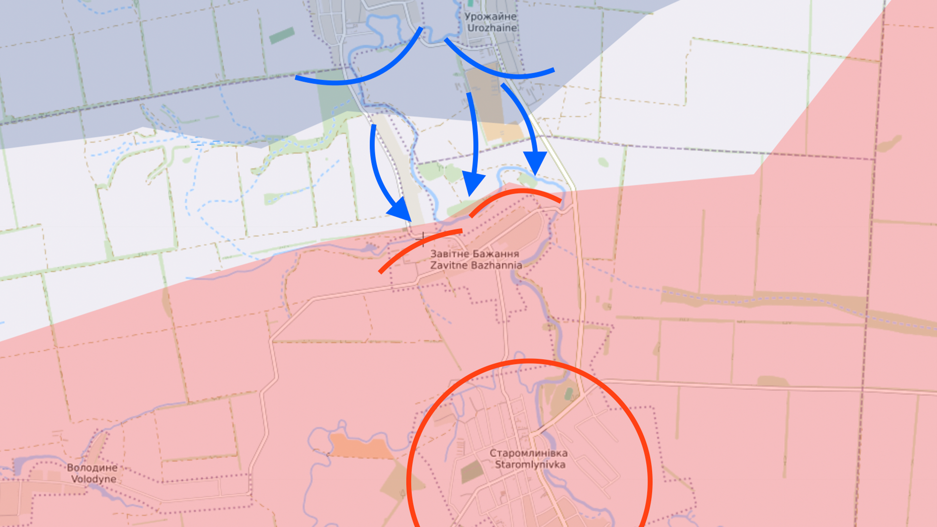 На фронте идут локальные бои. Украинские войска продвинулись к югу от Урожайного, которое вчера было официально освобождено. Впереди небольшой населенный пункт Заветное Желание (это название такое), а дальше большое село Старомлыновка, которое является важным узлом российской обороны на этом участке фронта.