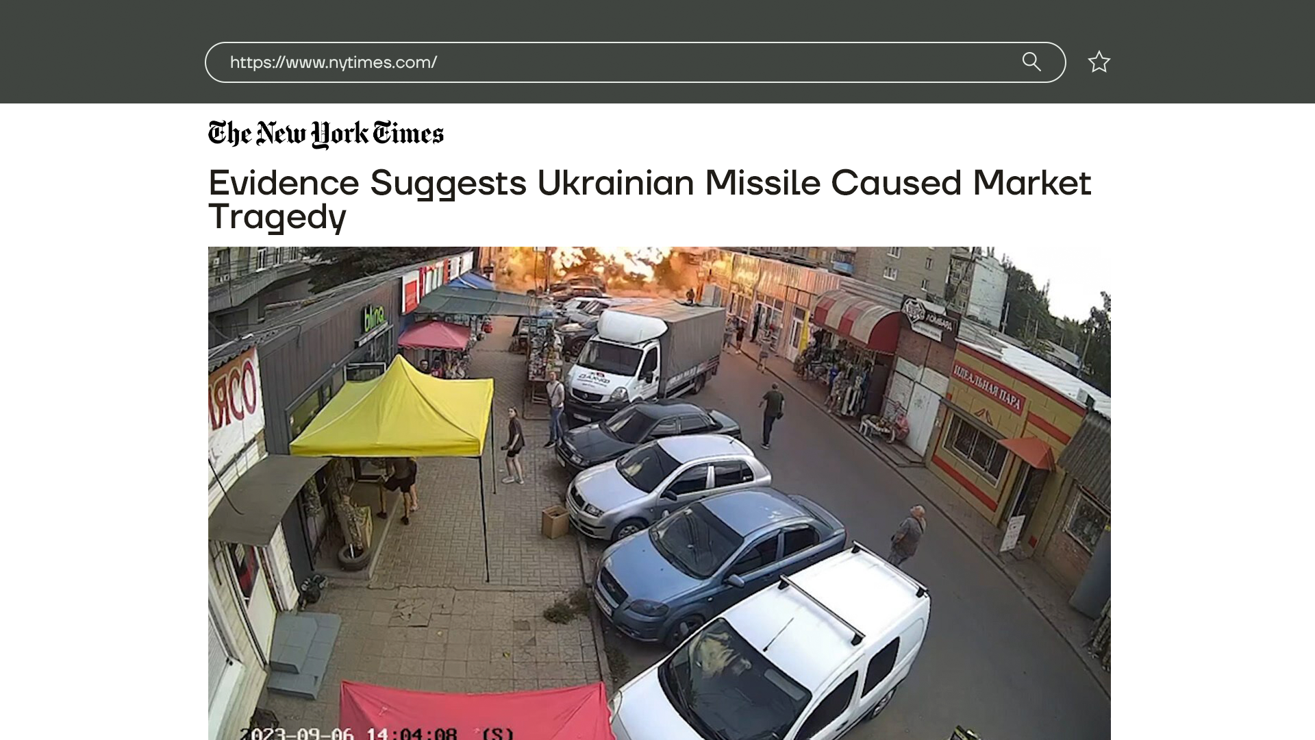 New York Times выпустило большое расследование о взрыве на рынке в Константиновке. От взрыва и возникшего пожара погибли 16 человек, более 20 получили различные травмы. Журналисты считают, что ракета была выпущена украинским зенитным комплексом «Бук» из города Дружковка. Через 4 минуты после запуска она упала в Константиновке. Что именно стало причиной отказа ракеты — неизвестно. Эксперты предположили, что ракета могла отклониться от курса из-за сбоя.