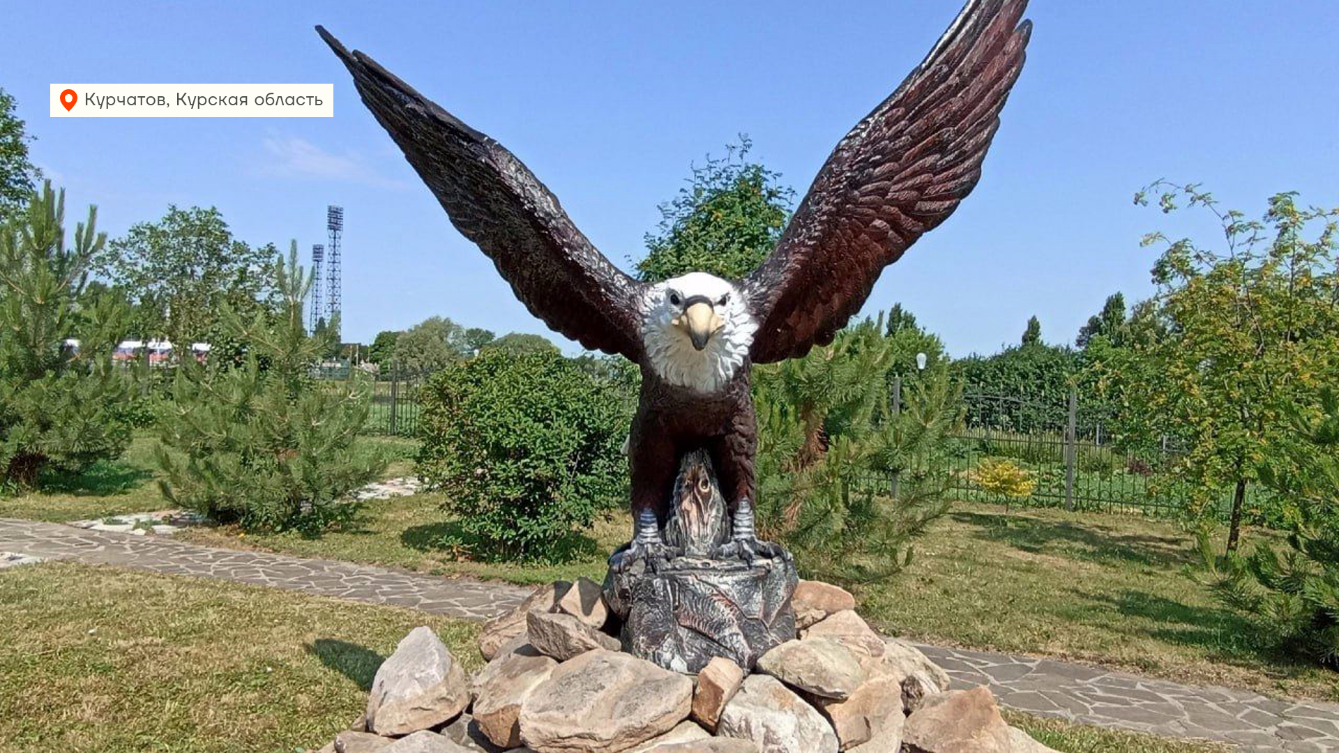 Ну и очень важная новость из Курской области. В июне в Курчатове установили статую вот такого орла. Но многие местные возмутились, потому что фигура уж сильно напоминала национальный символ Америки и как-то не вписывается в современный геополитический контекст. В итоге голову орлу перекрасили, чтобы люди успокоились. Помимо сине-желтых предметов теперь еще очень опасны вот такие орлы и любые символы Запада.