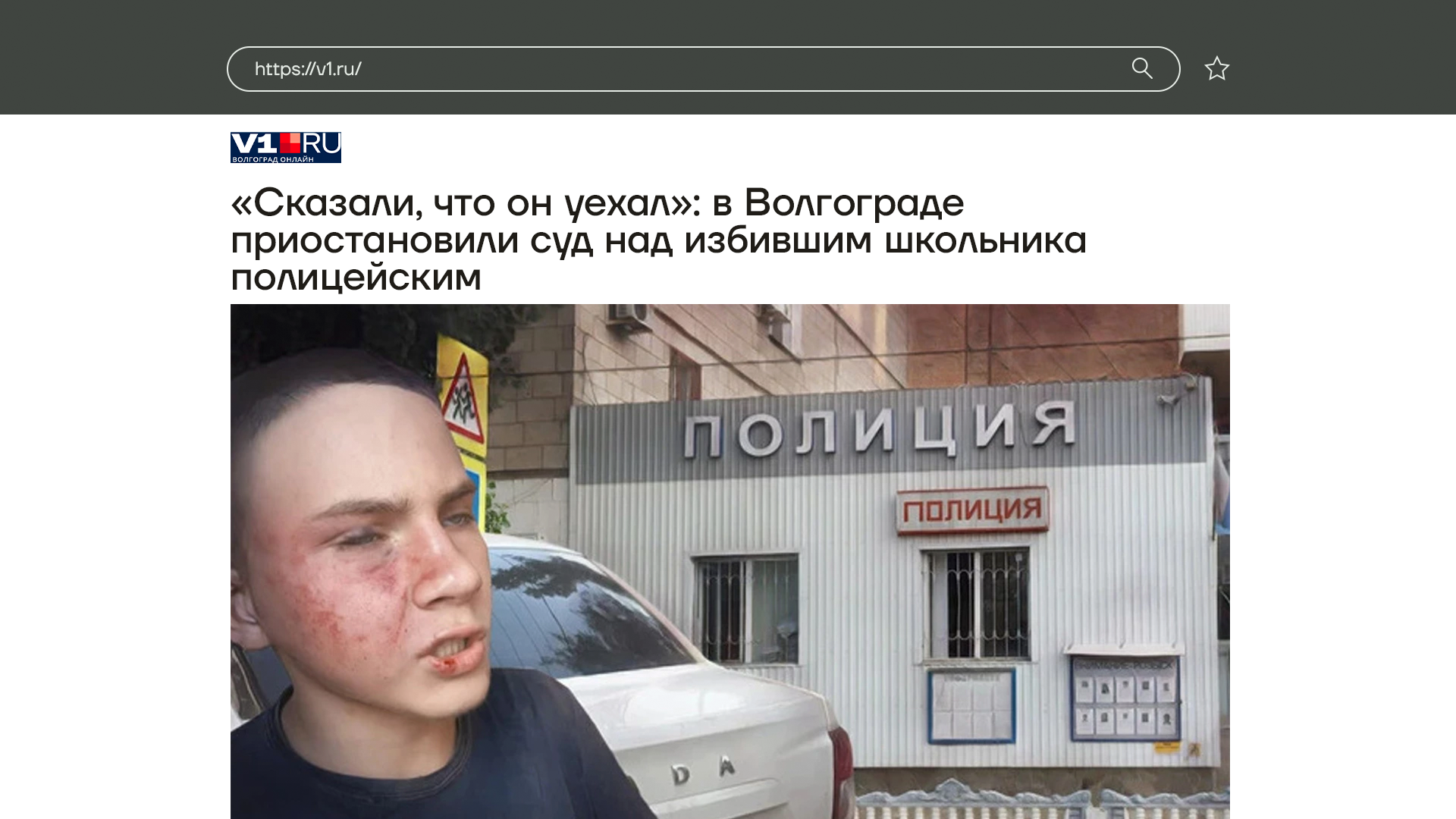В Волгограде прекратили суд над полицейским, который избил ребенка. 14-летнего мальчика полицейские перепутали с другим подозреваемым в краже, после чего сильно избили. Ребенок еще несколько месяцев восстанавливался после полученных травм. Полицейского обвинили в превышении полномочий, но никаких судебных разбирательств не последовало. Просто обвиняемый уехал на войну и его местоположение никто не знает.