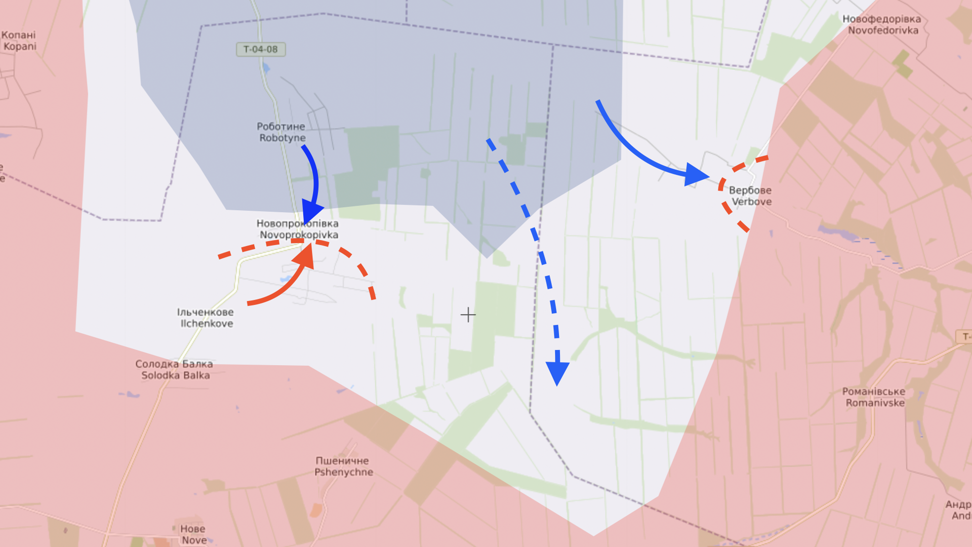 Активные действия на фронте проходят все там же — в районе сел Работино и Вербовое. ВСУ не только прошли первую линию укреплений (так называемую линию Суровикина), но и вошли на окраину Вербового. В Новопрокоповке также были замечены украинские силы. Есть кадры с контратакой российских военных.
