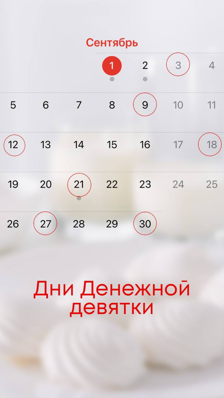 Дни денежной девятки в сентябре