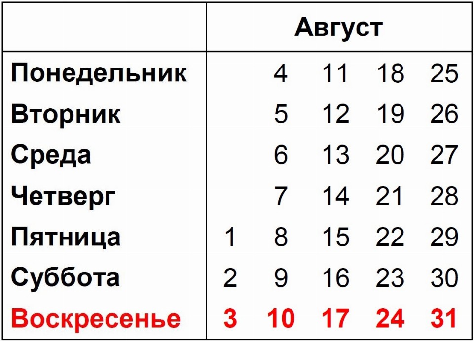 Дни недели август 2025 117 фото