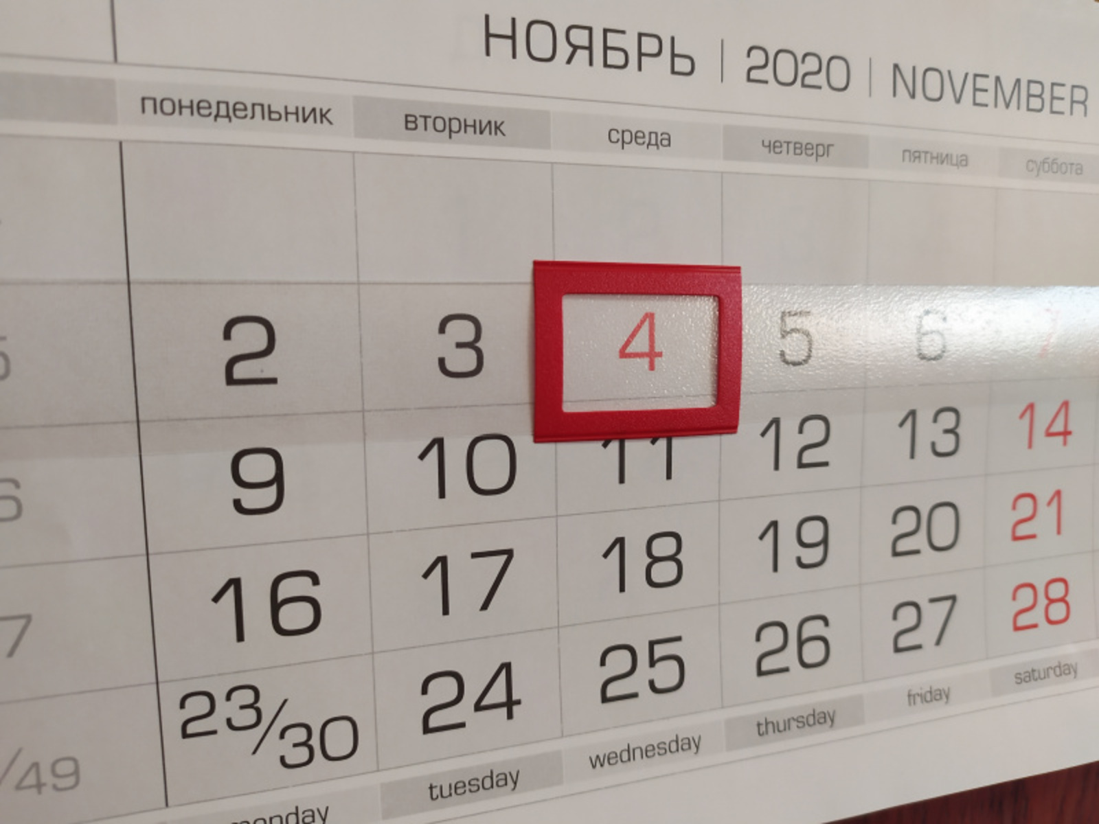 Дни недели ноябрь 2020