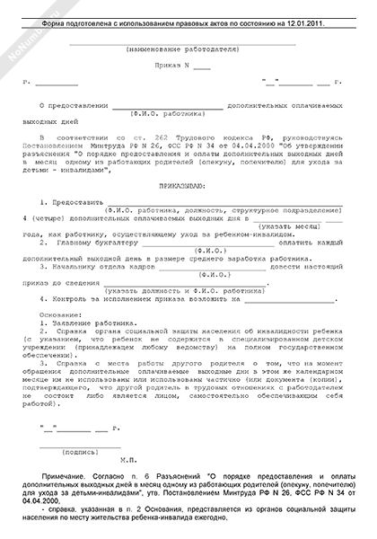 Дни отдыха с ребенком инвалидом
